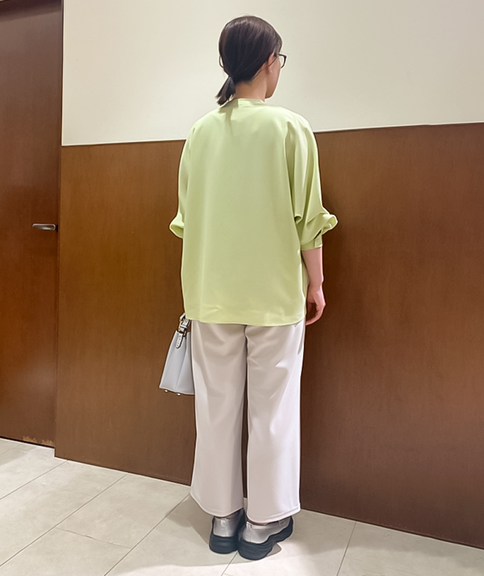 CATEGORY トップス カットソー ニット ブラウス・シャツ ボトムス パンツ スカート ワンピース ドレス ワンピース ジャケット・コート グッズ バッグ 小物 STAFF COORDINATE FEATURES GUIDE CONTACT MEMBER INSTAGRAM LINE MEMBER CART カートを見る 会員登録 ログイン BRAND INFO. COORDINATE08 COMMENT 定番の履きやすいパンツはアンクル丈。これからのシーズンにちょっと短めが足元をスッキリ見せてくれます。ブラウスはゆったりしていて、前裾のギャザーデザインが全体のバランスを良く見せてくれます。 モデル身長:162cm ITEM INFORMATION NEW ライトシャーリングアンクル丈パンツ 9,790(税込) 89pt 還元 ドルマンブラウジングブラウス 9,790(税込) 89pt 還元 OTHER COORDINATE 152cm 前 スタッフコーディネート一覧 次