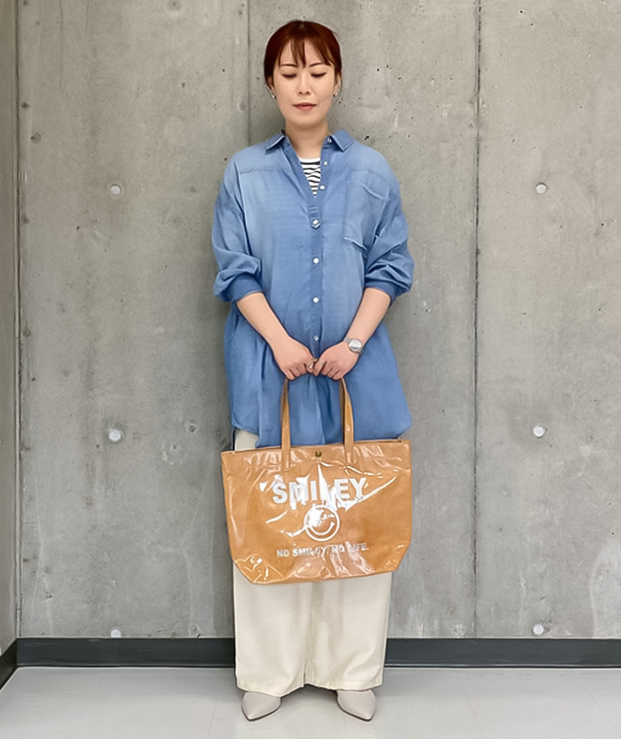 CATEGORY トップス カットソー ニット ブラウス・シャツ ボトムス パンツ スカート ワンピース ドレス ワンピース ジャケット・コート グッズ バッグ 小物 STAFF COORDINATE FEATURES GUIDE CONTACT MEMBER INSTAGRAM LINE MEMBER CART カートを見る 会員登録 ログイン BRAND INFO. COORDINATE05 COMMENT スマイルマークがポイントのPVC素材のバック。ラフなデニムシャツとコーデして大人カジュアルスタイルに。 モデル身長:162cm ITEM INFORMATION NEW 5倍ポイント スマイルPVCペーパートートバッグ 5,940(税込) 270Pt 還元 NEW 5倍ポイント シアーデニムシャツワンピース 12,980(税込) 590Pt 還元 再入荷 5倍ポイント 【動画掲載】【新色追加】シャツテールロゴノースリー 4,290(税込) 195Pt 還元 OTHER COORDINATE 164cm 152cm 162cm 前 スタッフコーディネート一覧 次