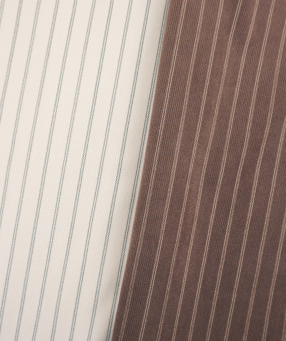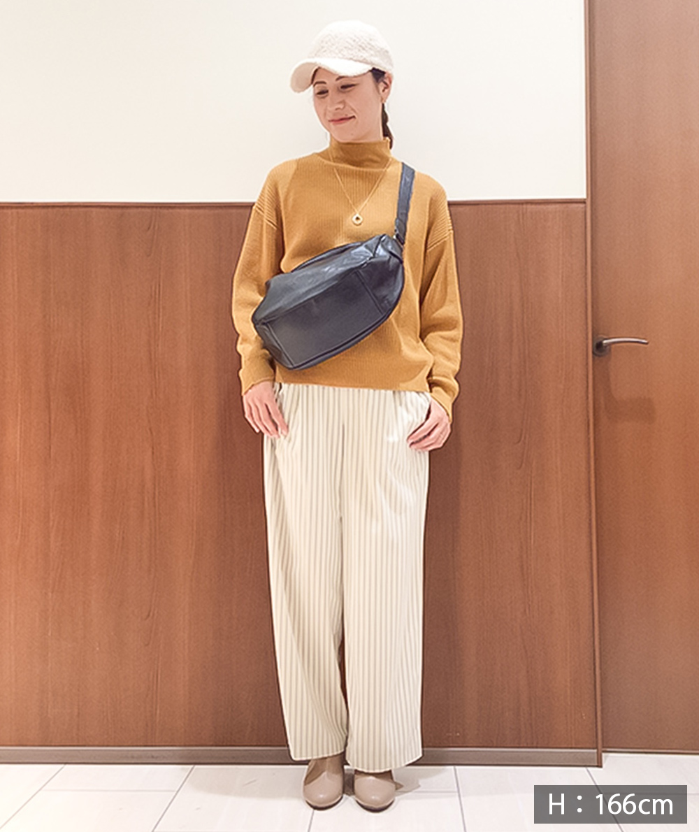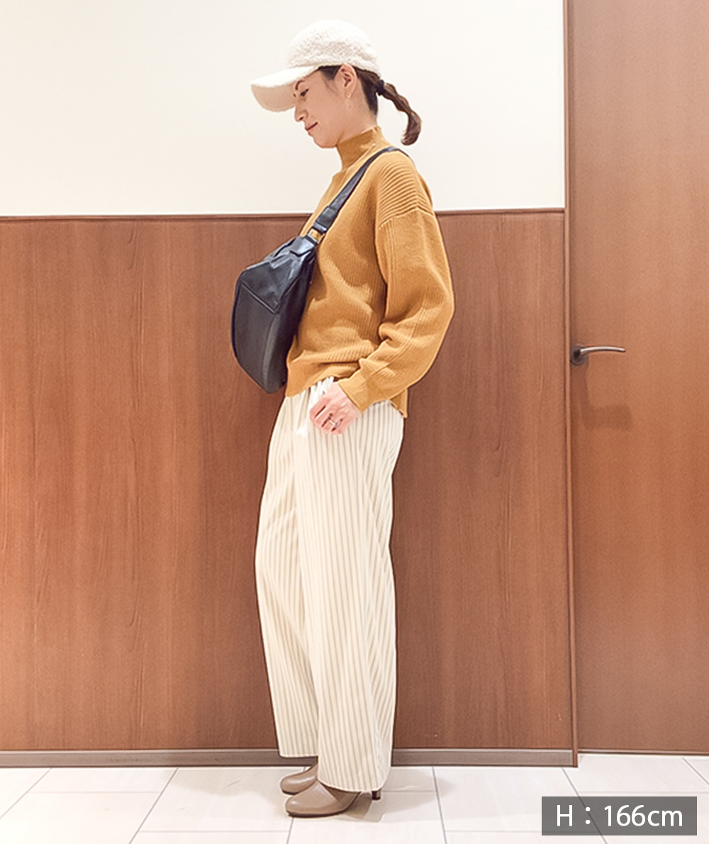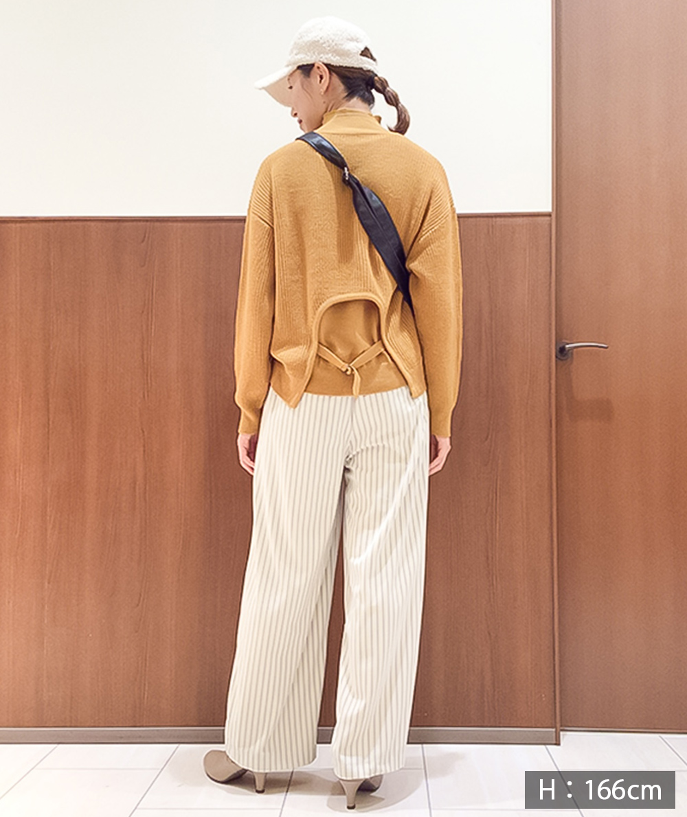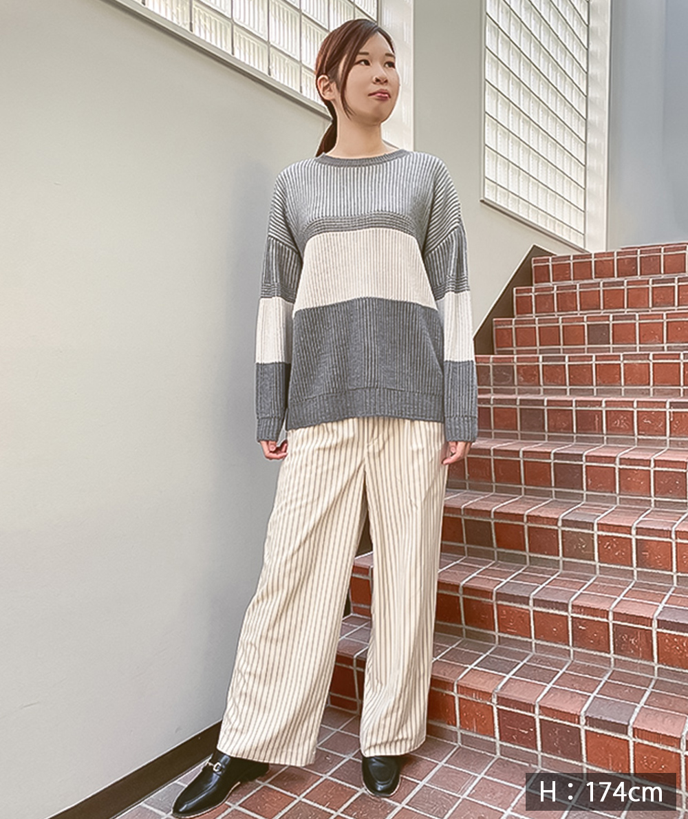 トレンドのベロア素材にストライプがプリントされたパンツが登場。ストンと落ちるストレートシルエットは身体のラインを拾わないので◎カジュアルなスウェットやニットと相性が良く、程良い光沢があるのでラフになり過ぎません。オーバーサイズなトップスと合わせていただくのもバランスが取りやすくておすすめです。