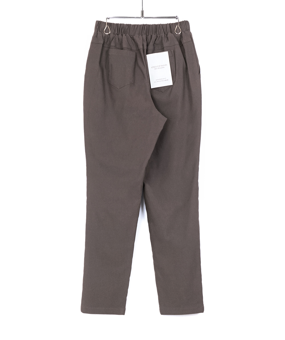 ストレッチ感があるNEWシルエット×裏起毛のテーパードパンツが登場。伸縮性のあるストレッチ生地ではき心地に優れたSサイズのテーパードパンツ。スタイルアップする様にポケットの位置やパターンを調整しています。これまでのスタイルアップパンツよりモモ幅を気持ちスッキリめにしています。お仕事からデイリーまで幅広く使えるのでおすすめです。( S・Mの2サイズ展開です )