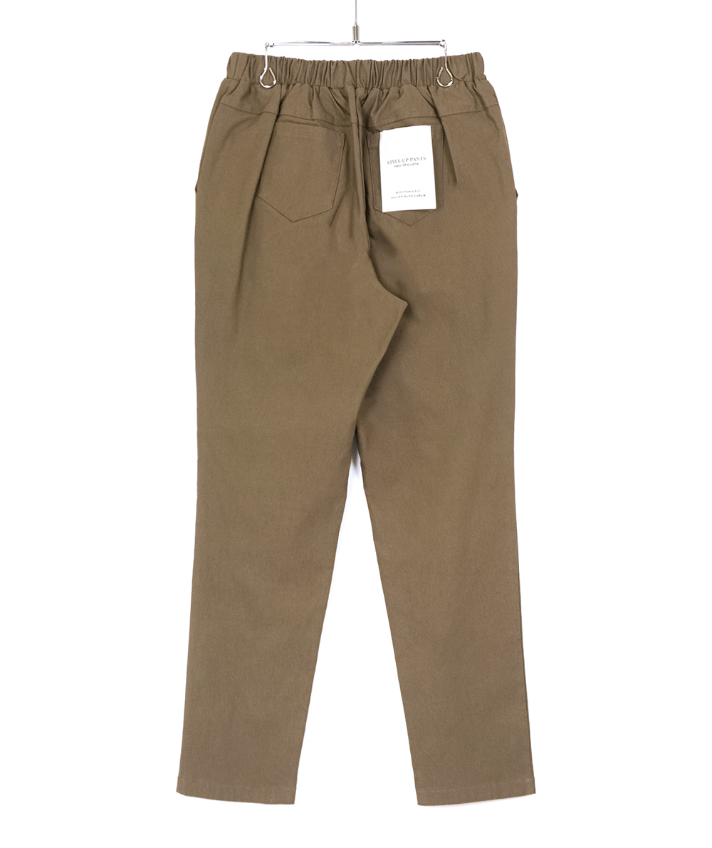 ストレッチ感があるNEWシルエット×裏起毛のテーパードパンツが登場。伸縮性のあるストレッチ生地ではき心地に優れたMサイズのテーパードパンツ。スタイルアップする様にポケットの位置やパターンを調整しています。これまでのスタイルアップパンツよりモモ幅を気持ちスッキリめにしています。お仕事からデイリーまで幅広く使えるのでおすすめです。( S・Mの2サイズ展開です )