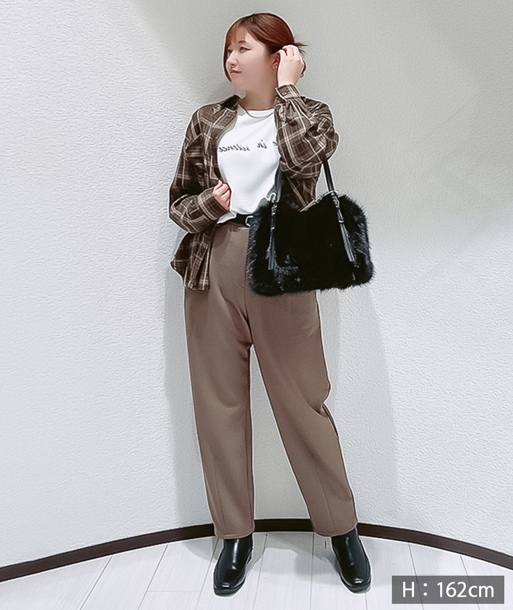 シンプルなロゴをプリントしたブラウスは、肌触りが良く一枚でも着ていただきやすいです。カーディガンやジャケットのインにも着やすいシルエットなので1枚持っていると重宝します。ニットやカーデ・ジャケットのインに着た時に、お袖のギャザーや裾のカーブシルエットがチラっと見えるとオシャレ感が高まります。