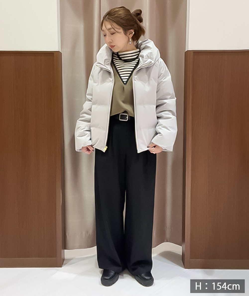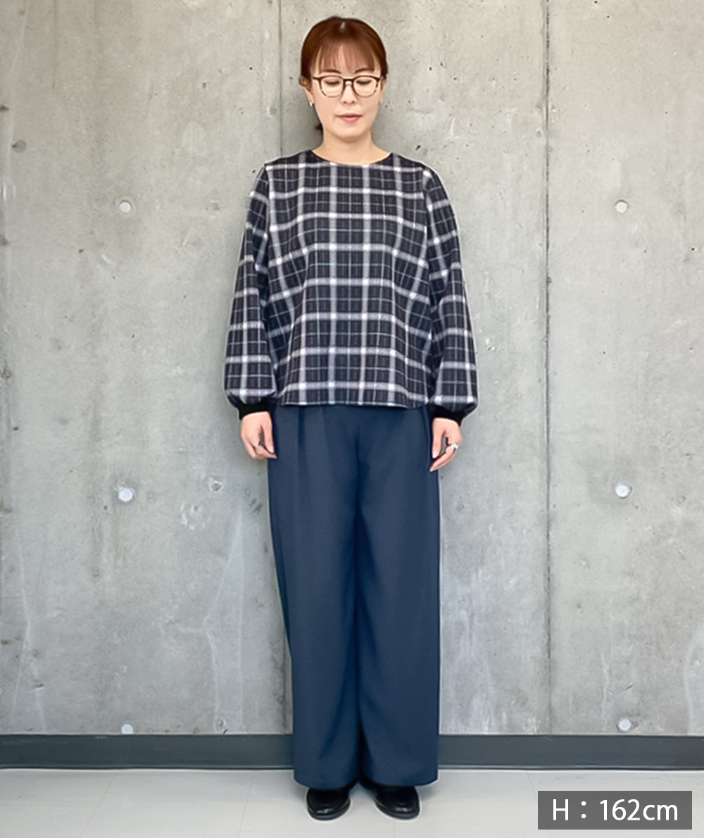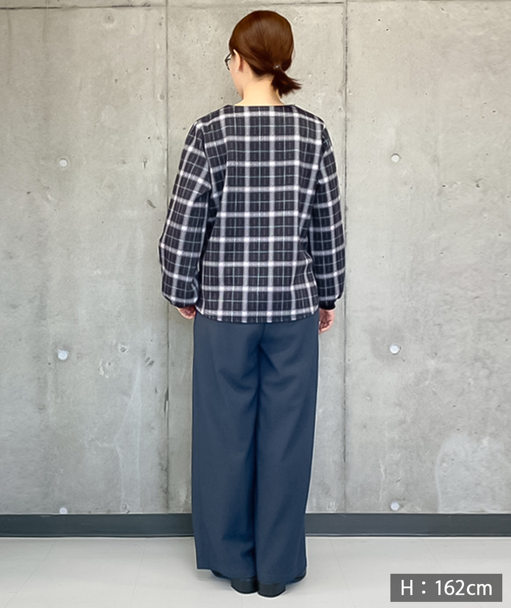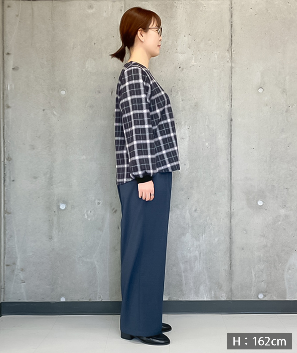 フロントに施したツータックがすとんと落ちるきれいなシルエットを演出してくれるワイドパンツ。ゆったりと脚のラインを拾わないシルエット。ウエストは脇前から後にかけてゴム仕様ではき心地抜群です。ブラウン・ブラックは同素材の脇ベルトVネックジャケット(商品番号:022515062)とセットアップでの着用も可能です。