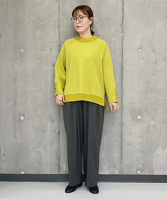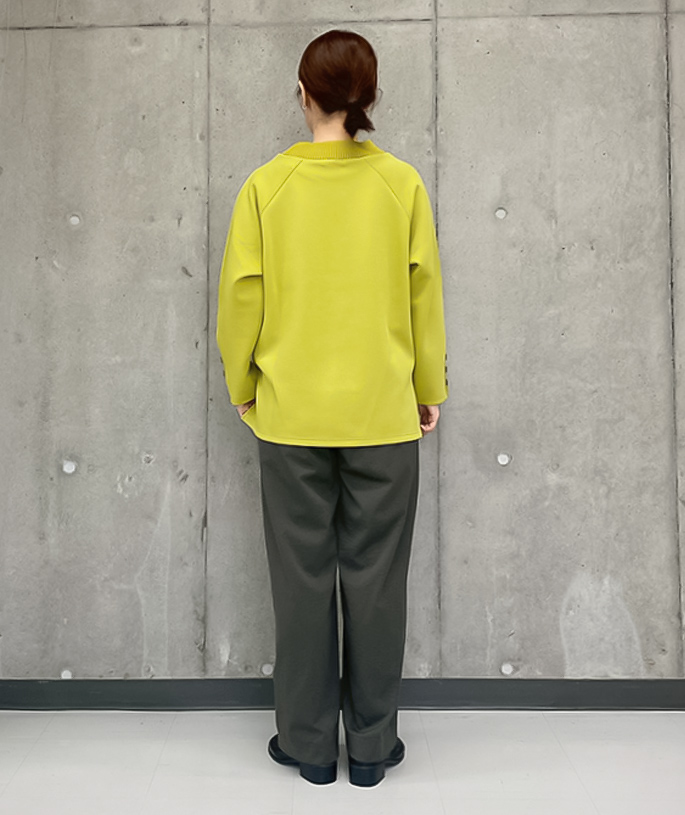 人気の2タックパンツが素材替えで登場。ウエストはゴム仕様で快適なはき心地。2タックで腰周りにゆとりをもたせ、裾にかけてやや細くなるシルエット。カットやニットなど長すぎない着丈のトップスと合わせるとバランスが良いです。