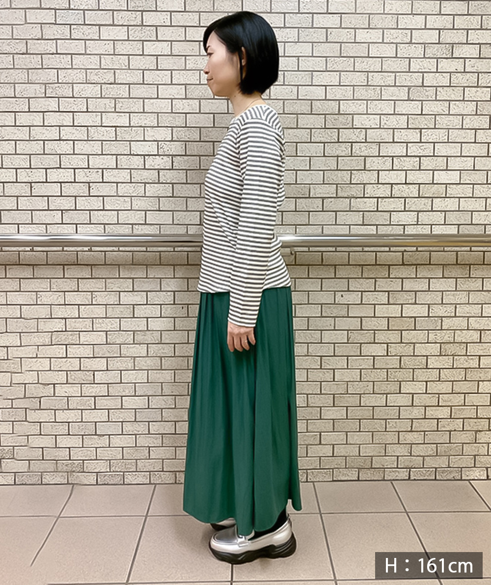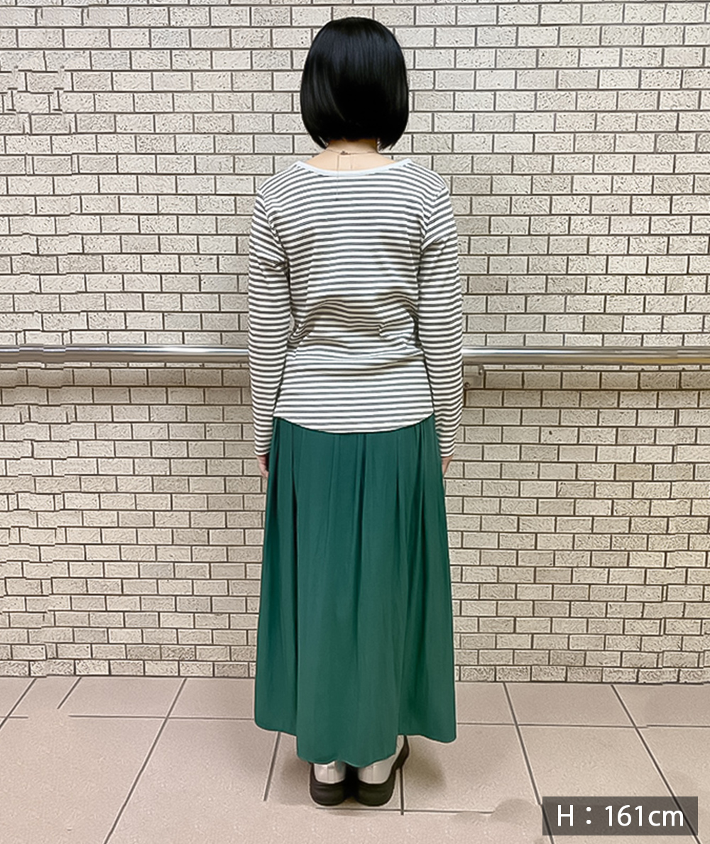 秋カラーが新鮮な定番のカッセンロングスカートは配色のラインテープが新しいデザインです。広がらないすっきりシルエットがどんなトップスにも合わせやすい万能スカートです。