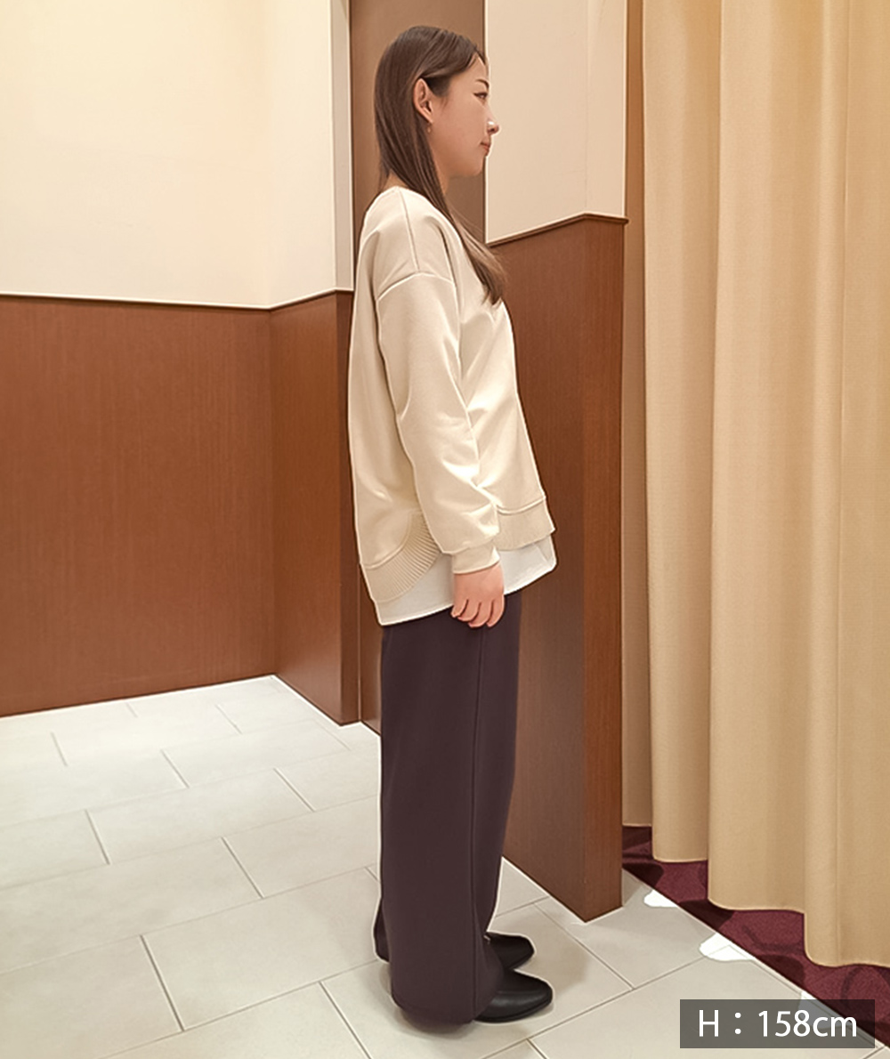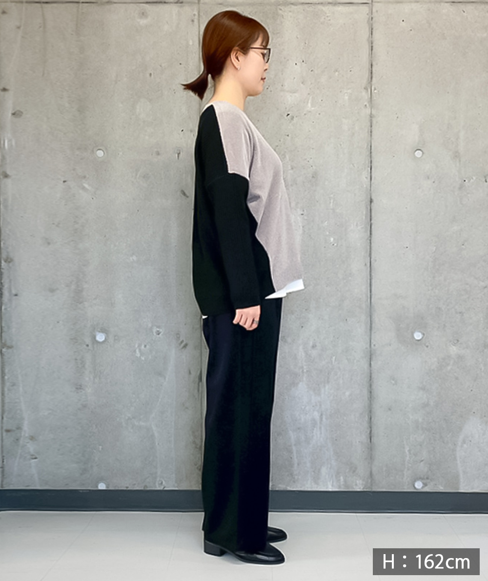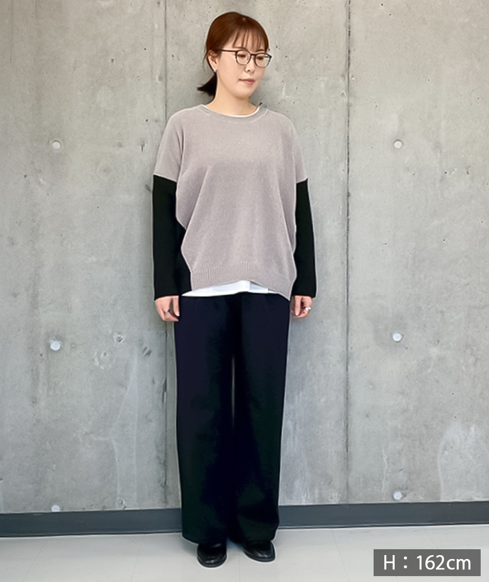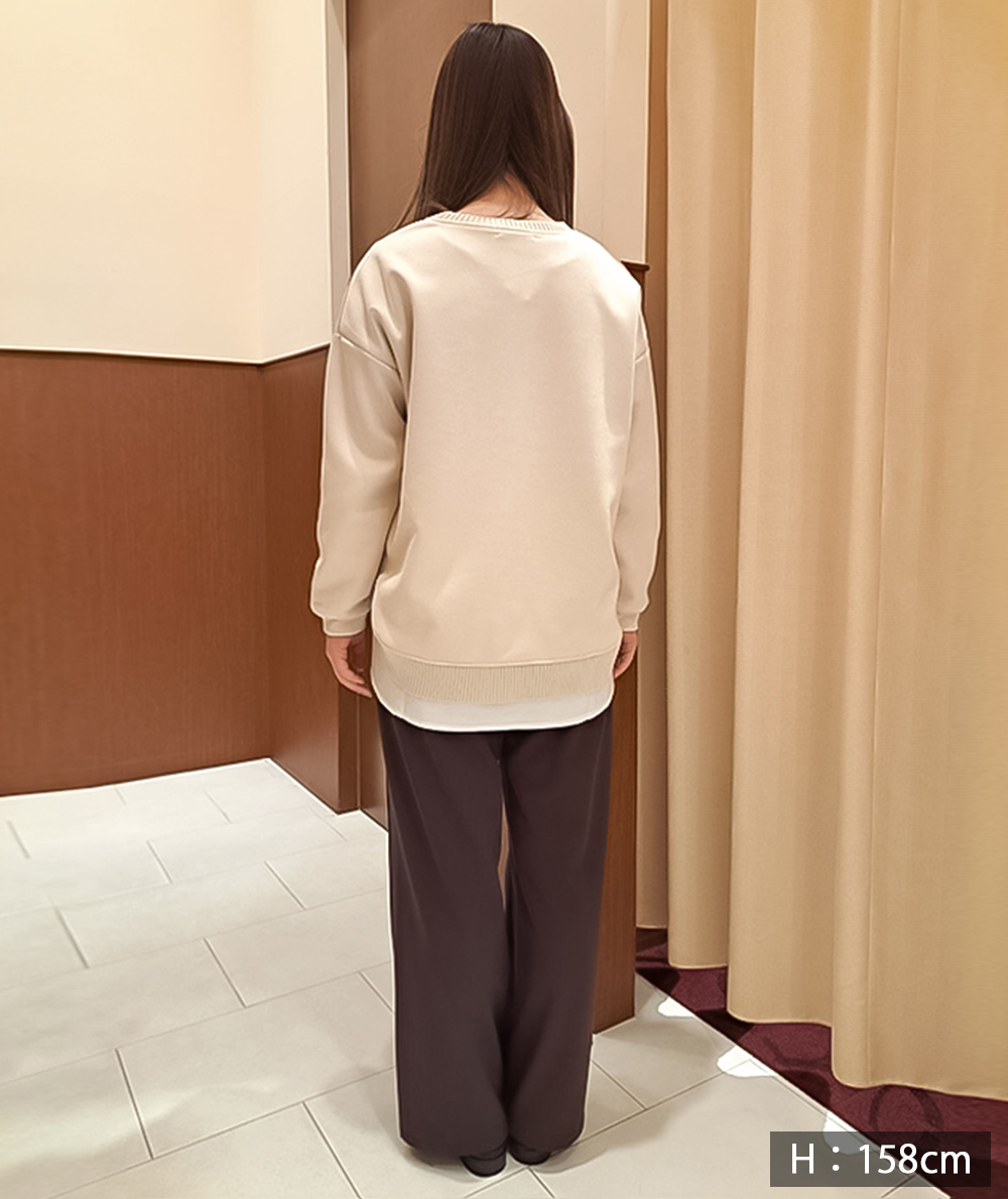裾が異素材の布帛素材になったインナートップスはレイヤードした時のワンポイントとして裾から見えるとおしゃれです。布帛見えするカットソーとのドッキング。裾の切り替え部分はダブルになっているので、プルオーバーのインナーとしてはもちろん、羽織のインナーとしも重宝するアイテムです。