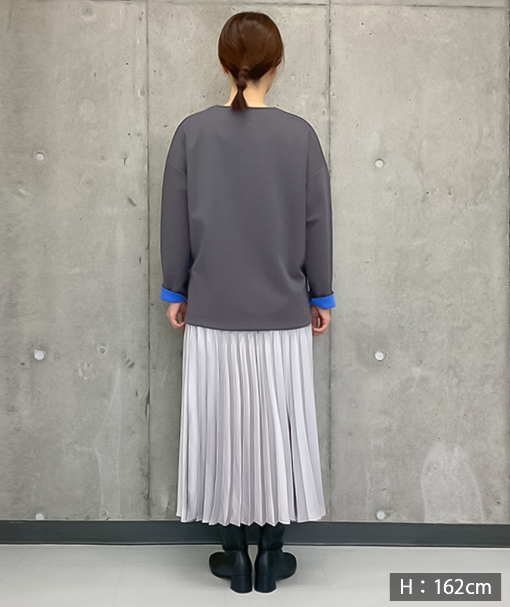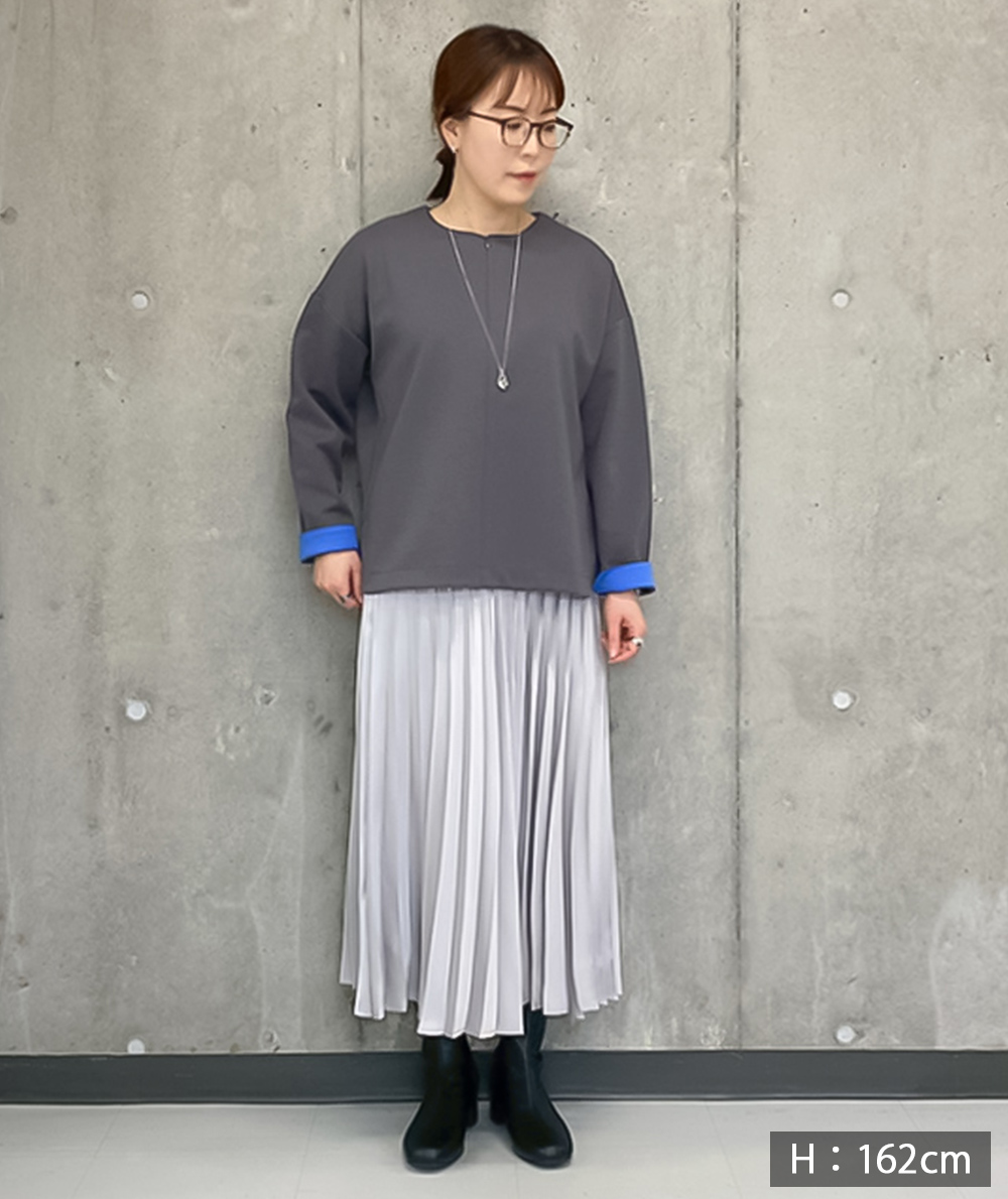 トレンドのハーフジッププルオーバーは、インナーのレイヤードに合わせてネックの開きを変えられます。裏のちらっと見える配色使いがさりげなくポイントに。袖口はそのまま着ても、折り返して配色を見せてもおしゃれなトップスです。