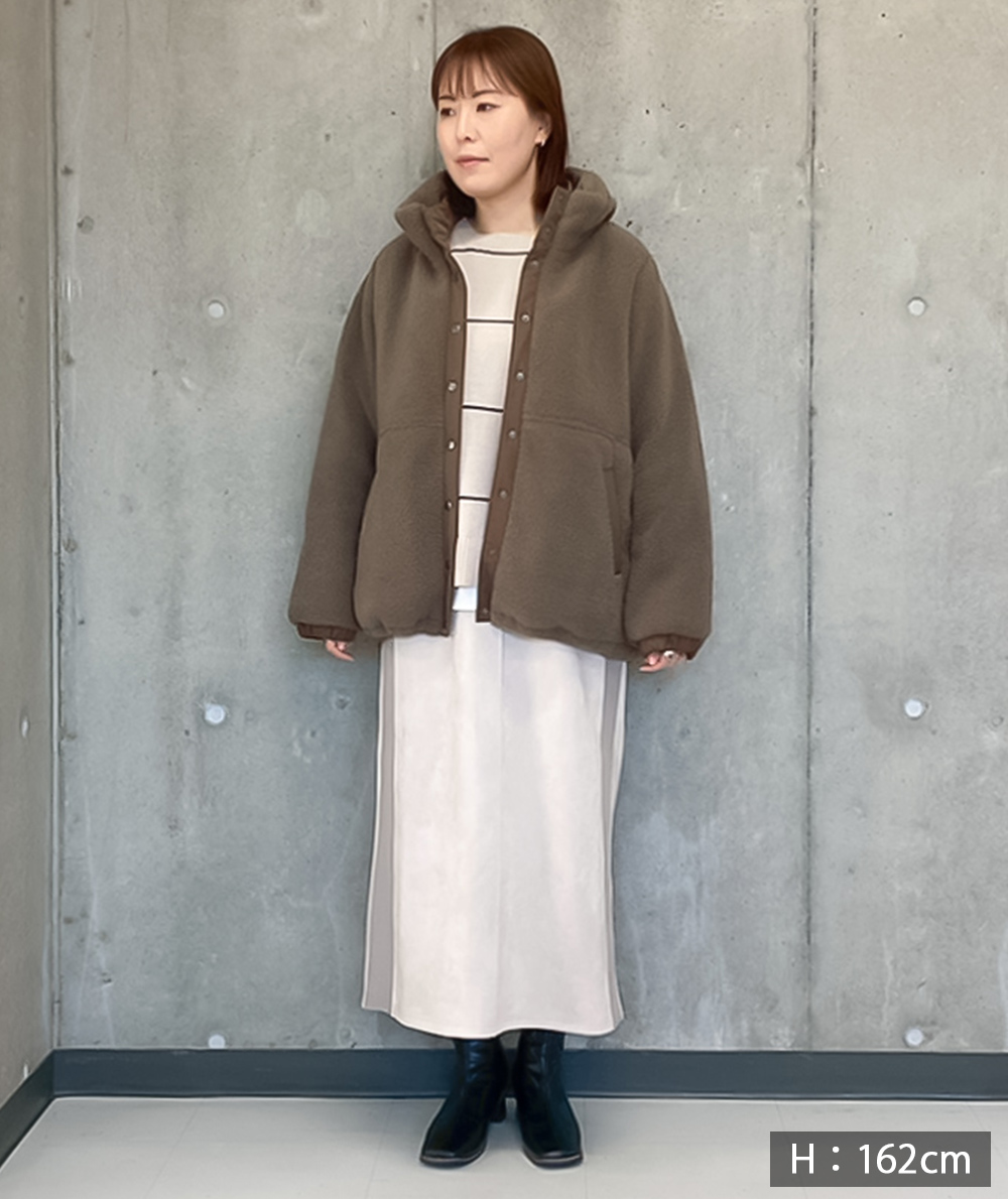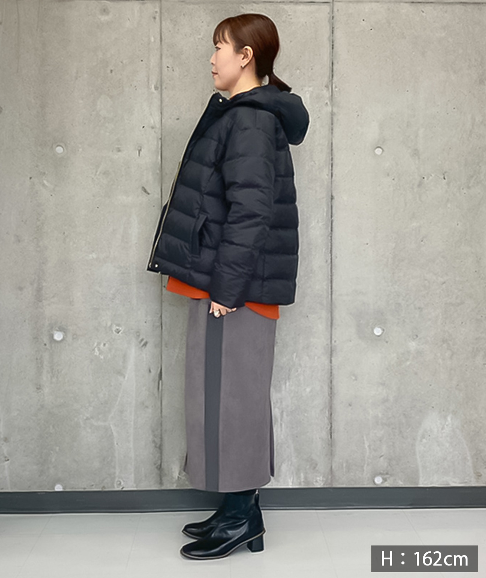 ソフトなカットフェイクスエードを使用したロングスカートは人気のサイドのリブ使いが細見え効果のあるIラインスカートです。長すぎない着丈で低身長の方も合わせやすいサイズ感です。お家でお洗濯ができるイージーケアも嬉しいポイントです。同素材のラグランカットスエードプルオーバー(商品番号:022521094)とセットアップ風にも着こなせます。