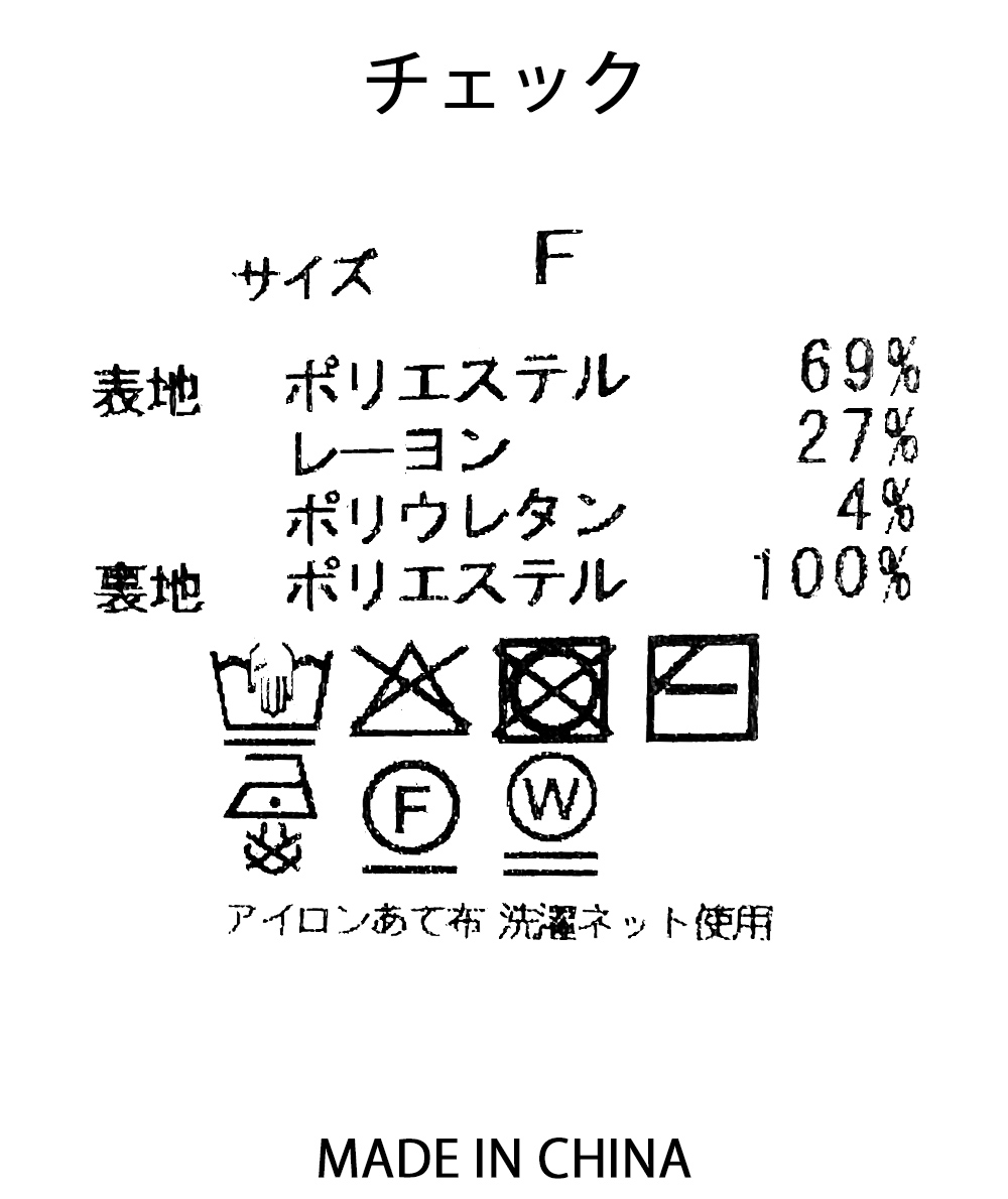 表地:ポリエステル 69% / レーヨン 27% / ポリウレタン 4%
