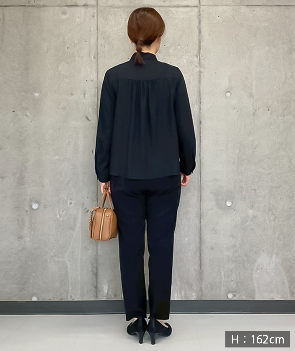 セレモニーにもお仕事にも活躍する、上品なボウタイブラウス。素材にはとろみのあるシャツ地を採用し、きれいめな印象を演出。ボウタイはリボン結び・片結び・ラフに垂らすなどアレンジ自在で、TPOに合わせて印象を変えられます。オフィスカジュアルにもフォーマルなどのオケージョンにもぴったりな一着。