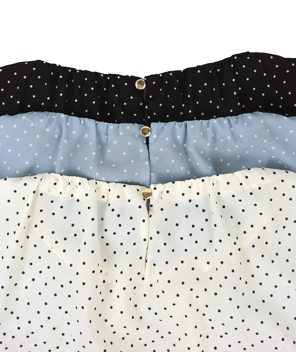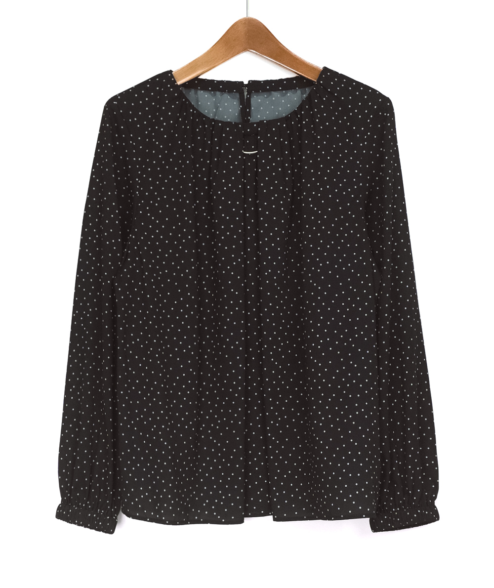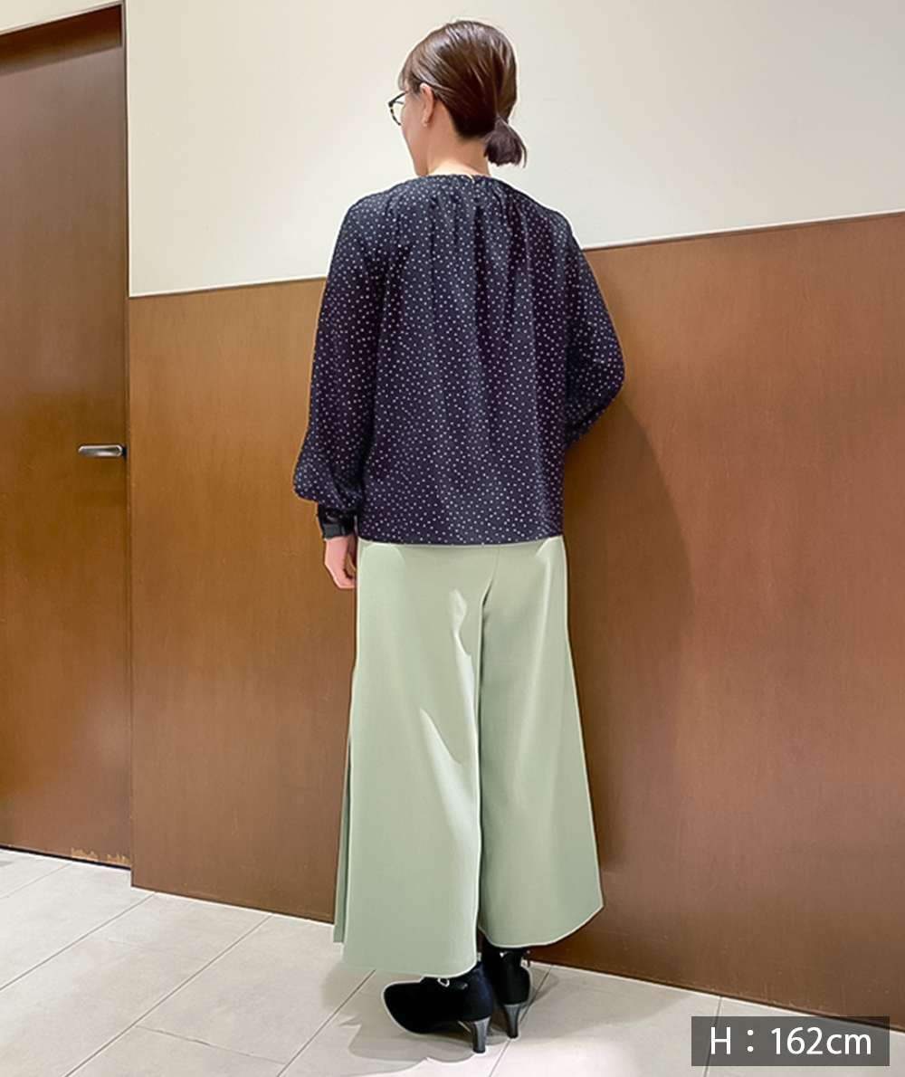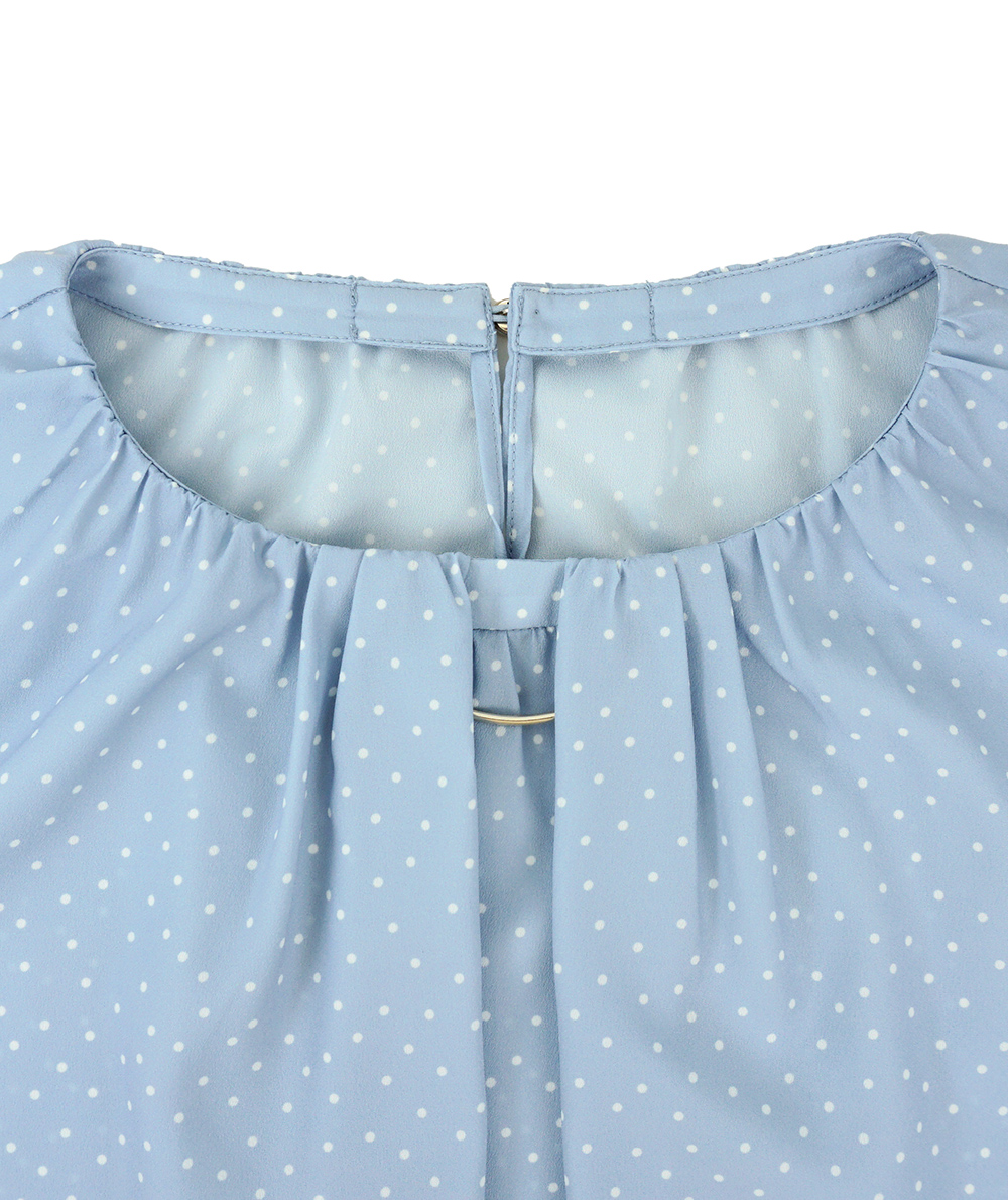 首元にアクセントを添えるメタルバーがポイントのドットプリントブラウス。メタルバーは取り外し可能でシンプルなブラウスとしても使える嬉しい2WAY仕様です。身体のラインを拾いにくいゆったりとしたシルエットで、体型カバーを叶えつつ上品な落ち感を演出してくれます。メタルバーの輝きを活かし、シンプルなスラックスやスカートを合わせた王道のオフィスコーデもおすすめ◎きれいめな素材感なので、ジャケットやカーディガンのインナーとしてもシーズンレスに活躍します。セレモニースタイルにもおすすめです。