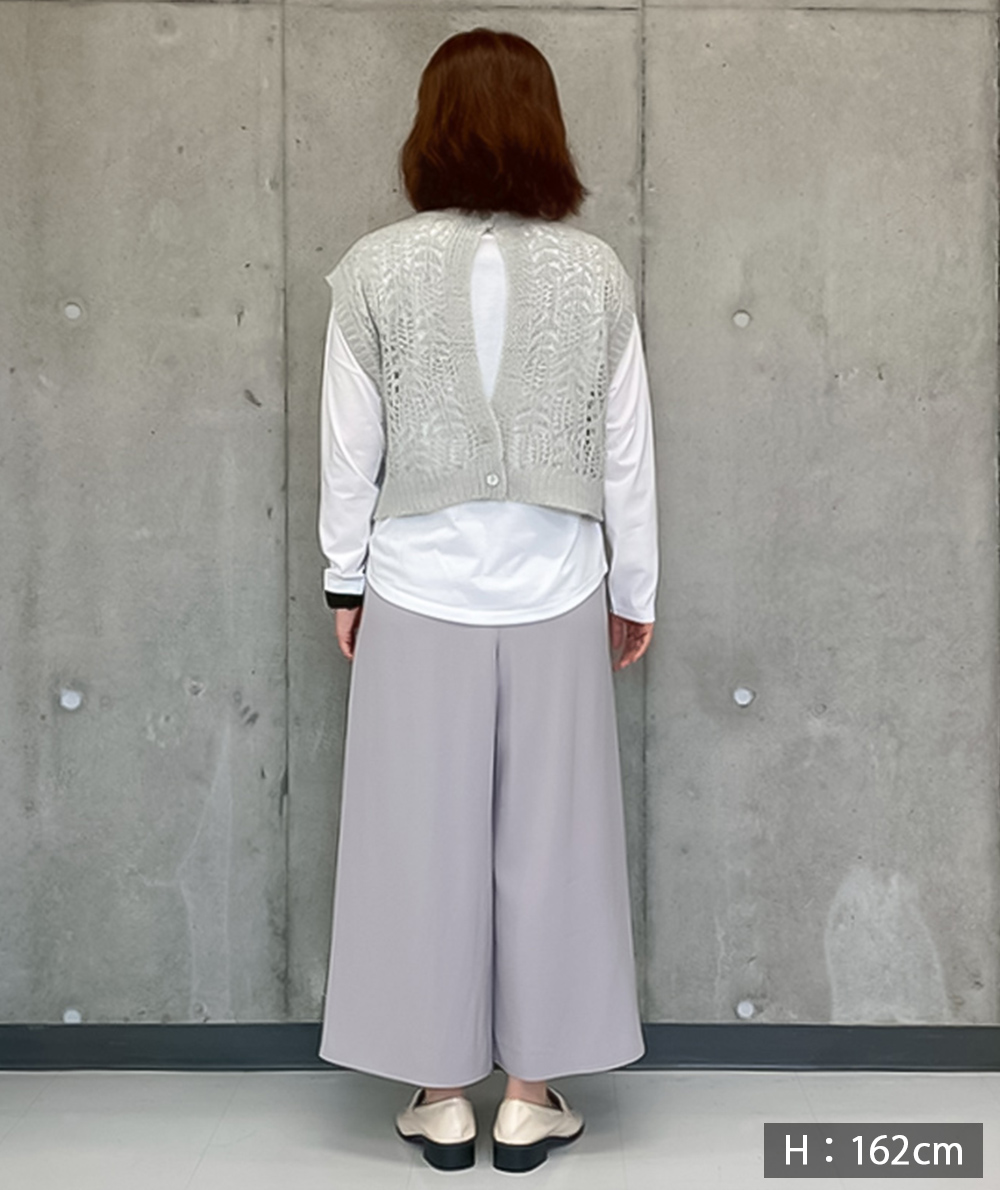 スカートのようなエレガントな見た目と、パンツの実用性を兼ね備えたフレアパンツ。ウエストはオールゴム仕様で、締め付け感がなく長時間の着用でも快適。素材には触れると涼しく、ひんやりとする接触冷感とUV加工が施されています。シンプルなデザインながら、女性らしさを引き立てるシルエットで、カジュアルなTシャツからキレイめなブラウスまで様々なトップスと相性抜群。軽やかな素材で春から初夏・残暑から秋など長く着用いただけます。