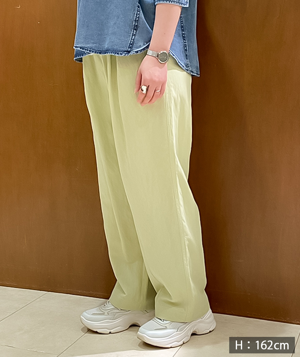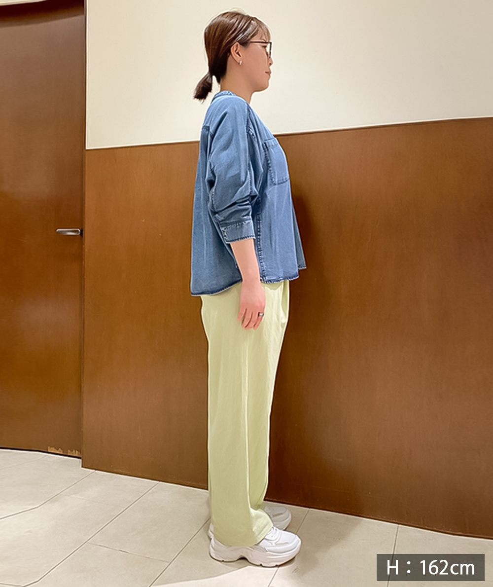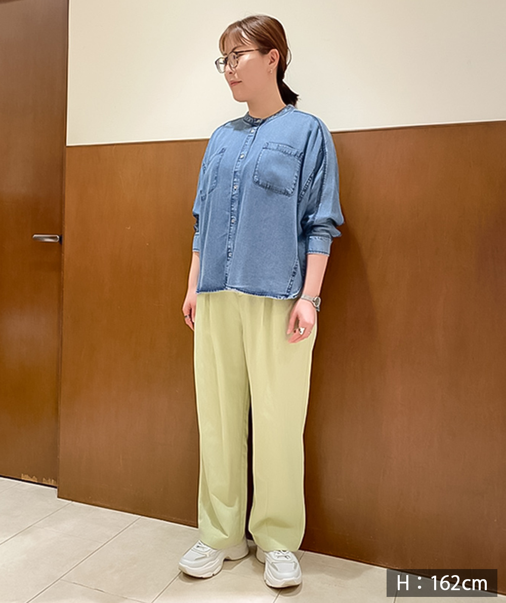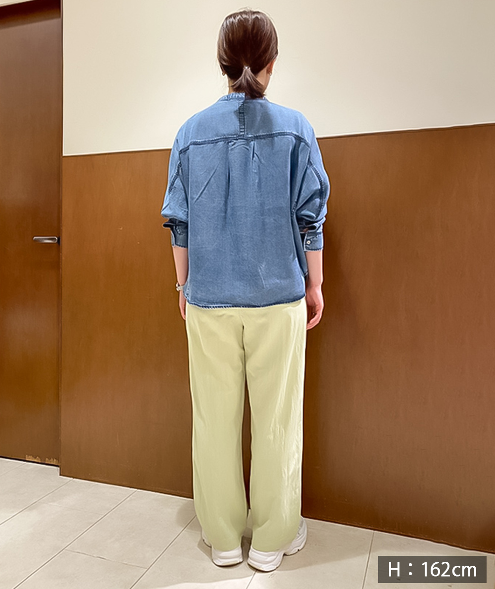 トレンドのコクーンシルエットを取り入れやすいように腰回りから裾にかけてのシルエットを緩やかにしています。素材は表情があり、大人カジュアルな雰囲気で着用できます。