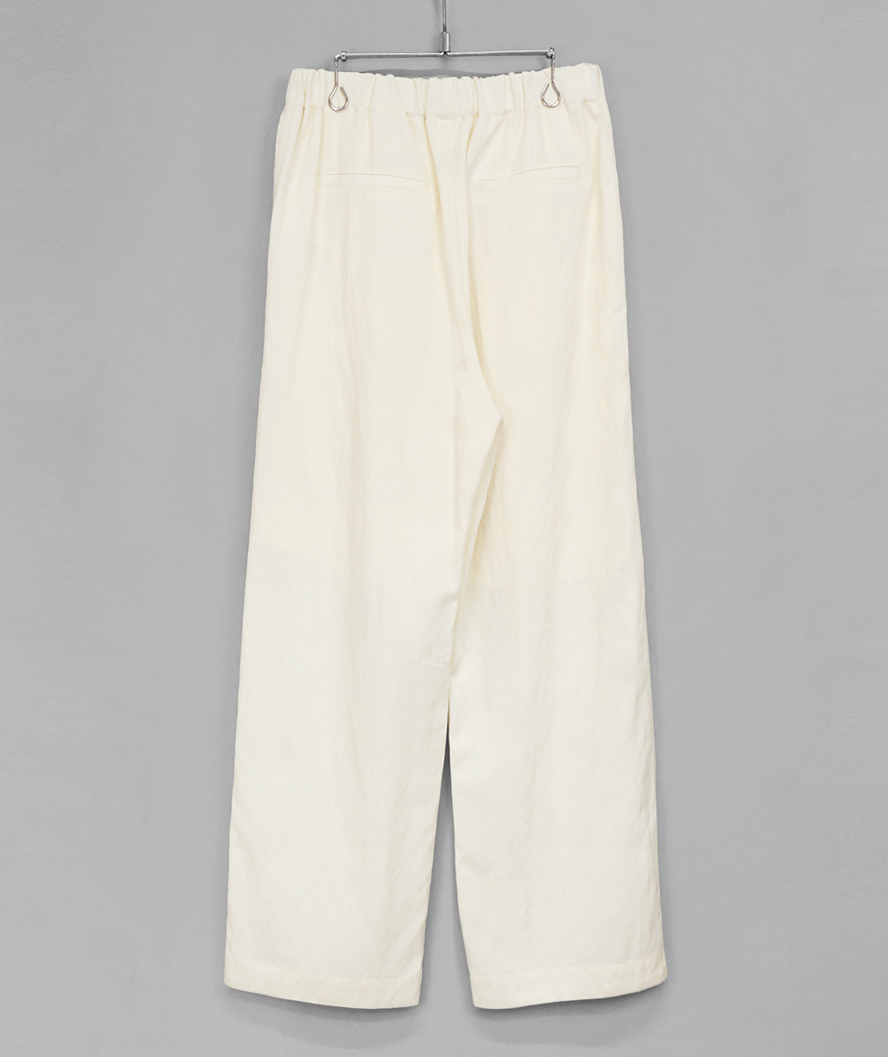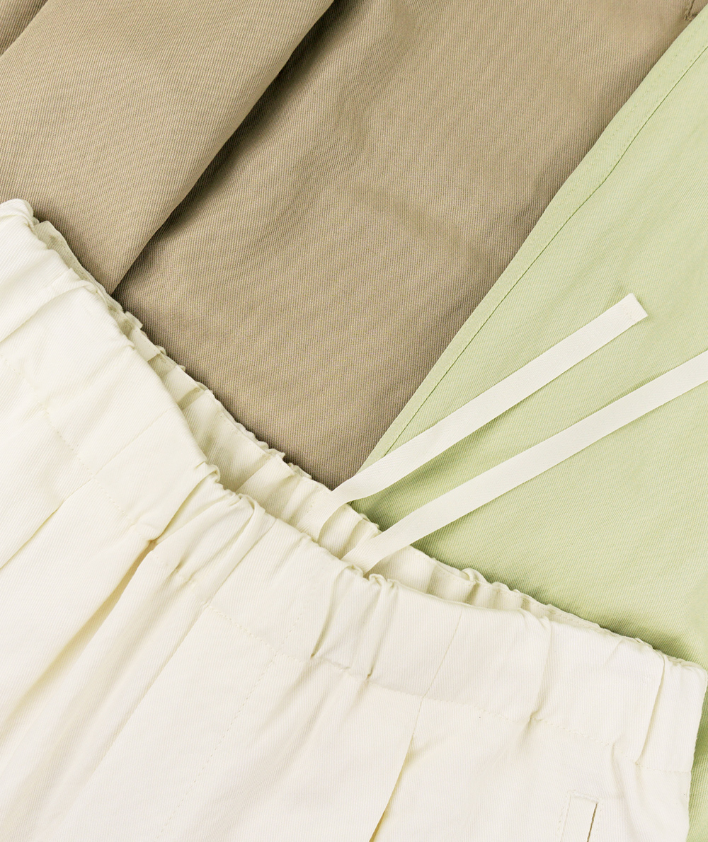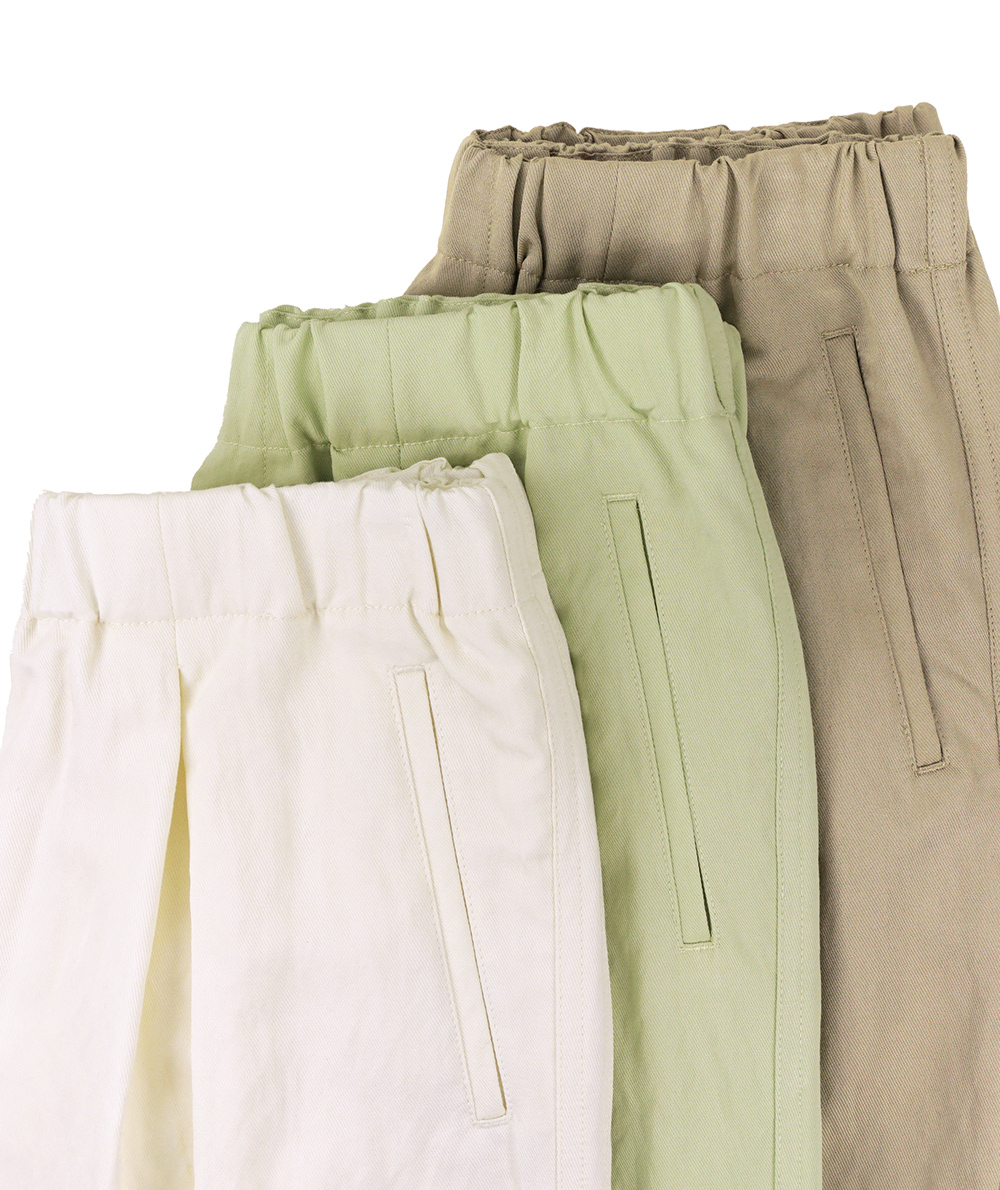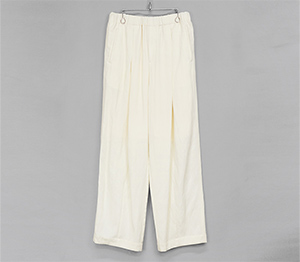 トレンドのコクーンシルエットを取り入れやすいように腰回りから裾にかけてのシルエットを緩やかにしています。素材は表情があり、大人カジュアルな雰囲気で着用できます。