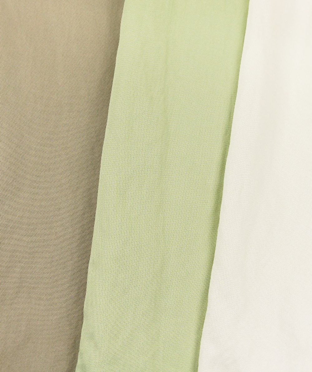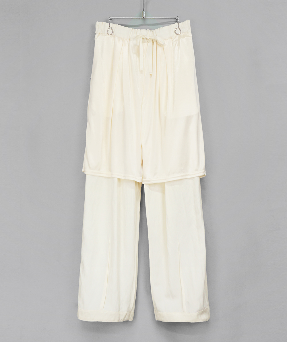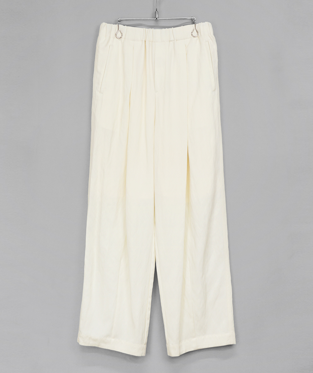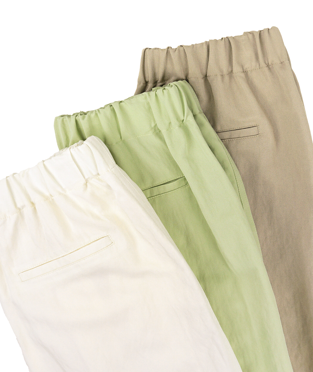 トレンドのコクーンシルエットを取り入れやすいように腰回りから裾にかけてのシルエットを緩やかにしています。素材は表情があり、大人カジュアルな雰囲気で着用できます。