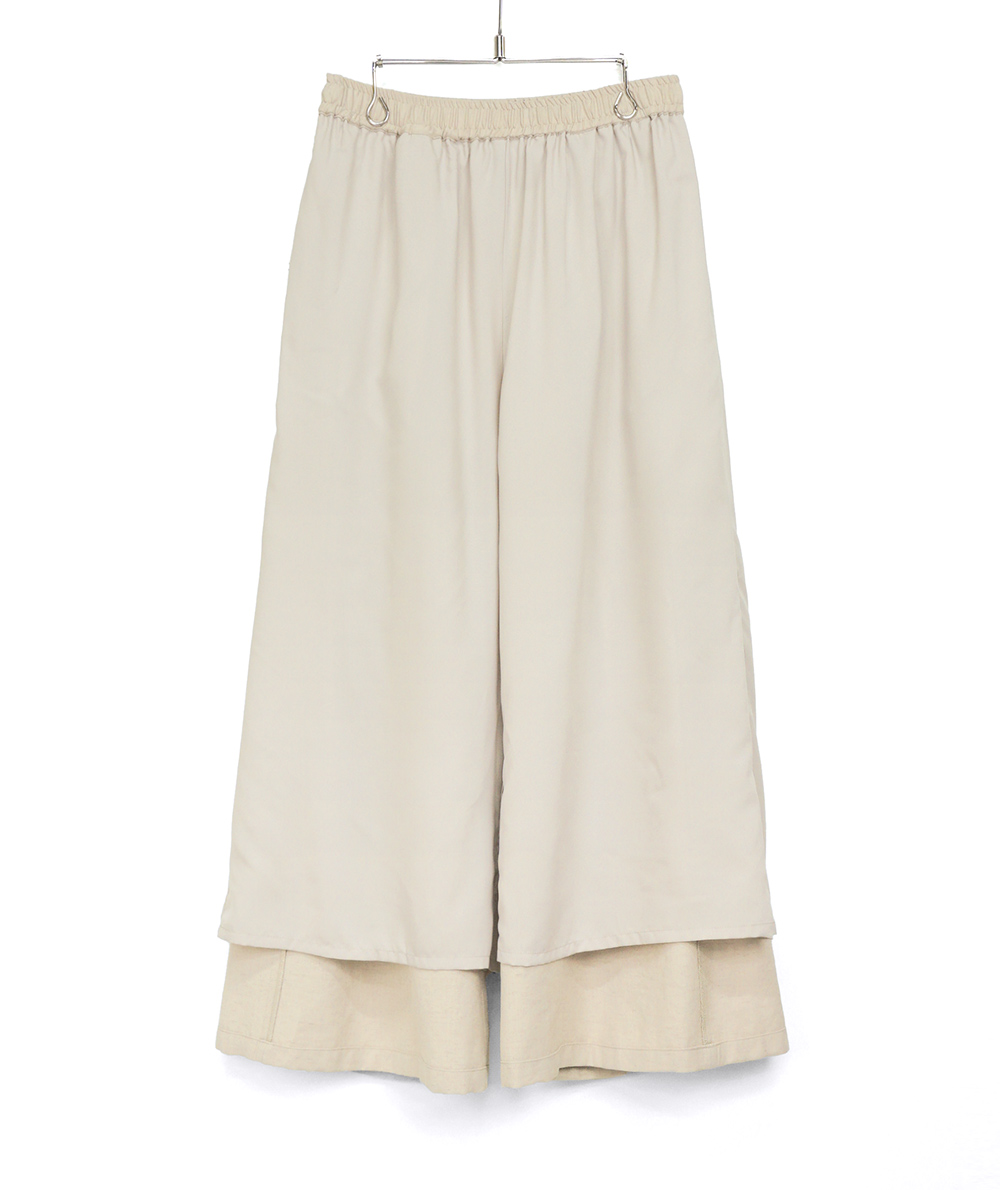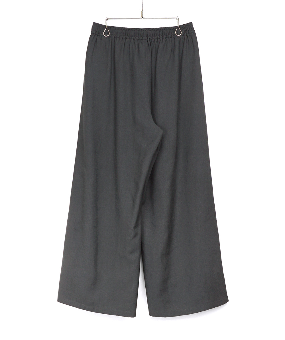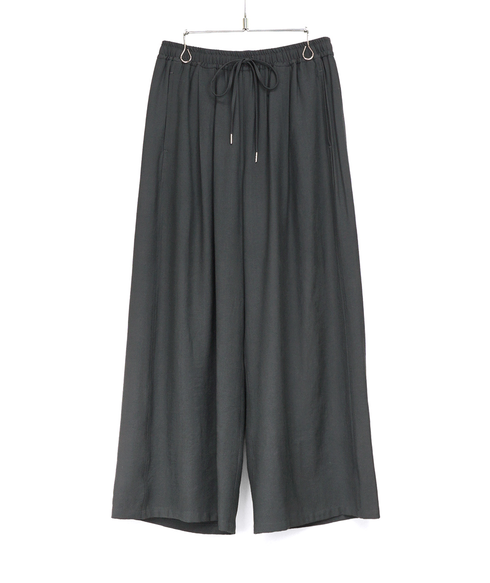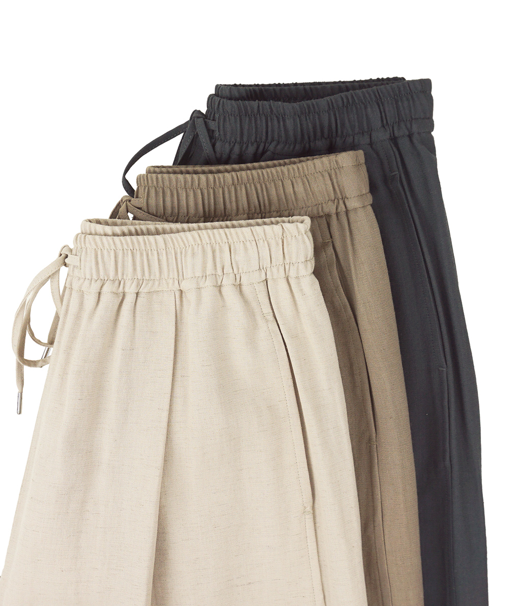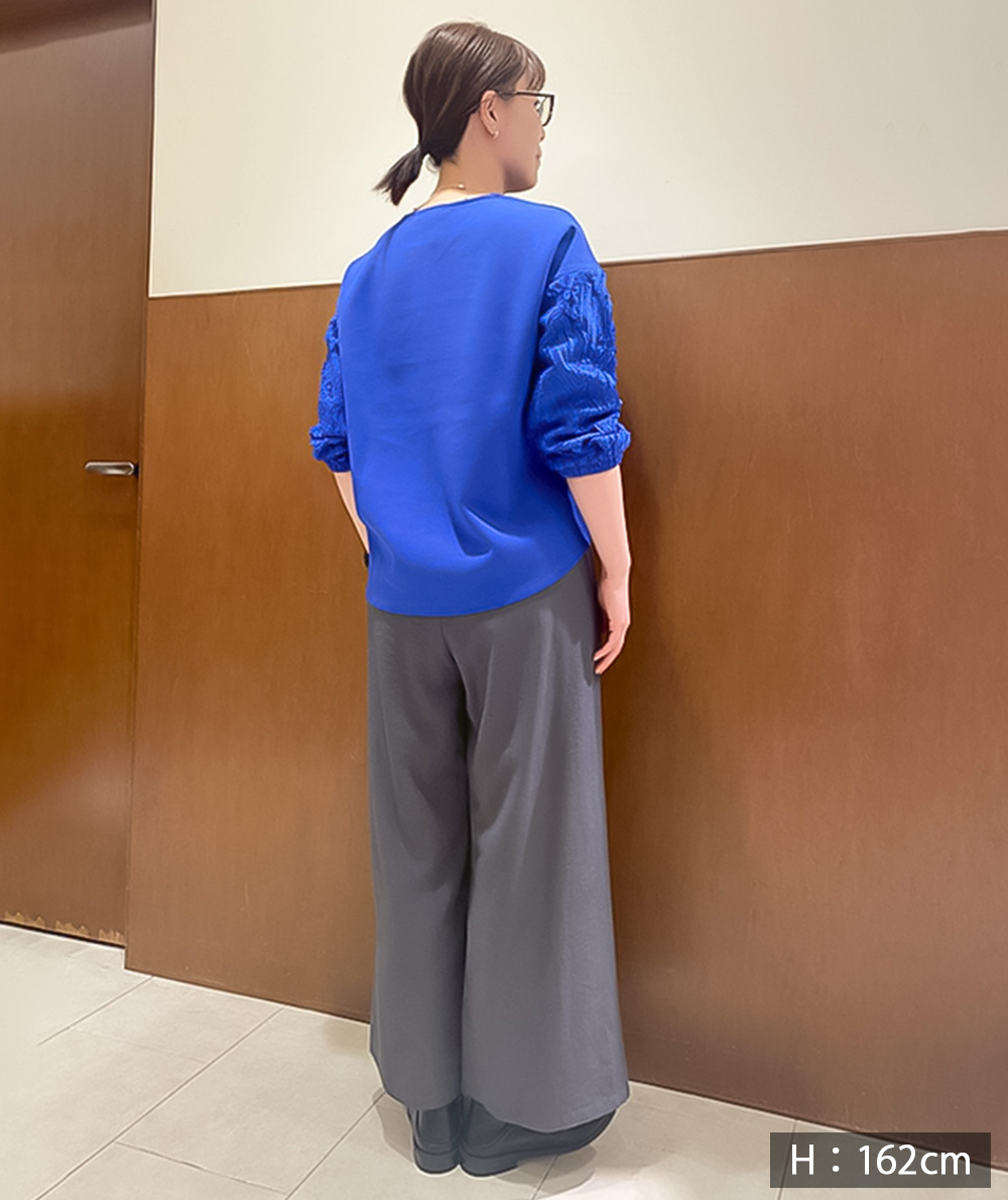 麻調の落ち感ある素材で仕立てたフレアワイドパンツは、ナチュラルな風合いと上品さが魅力の一枚です。程よい落ち感で美しいシルエットを生み出し、動くたびに女性らしい印象を与えてくれます。脇前の切り替えデザインで足長効果も期待できます。ウエストは総ゴム仕様になっており、締め付け感がなくリラックスして着用できます。Tシャツを合わせてもラフになりすぎず、程よくきちんと感のあるコーディネートが叶います。裾バルーンライトブルゾン(商品番号:022611028)とセットアップでの着用もおすすめです。