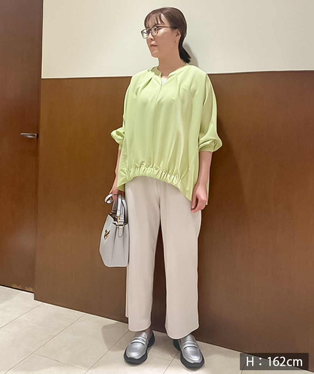アルファベッツで人気のパンツが薄手素材になって登場。コーディネートに合わせやすい絶妙なオリジナルカラー展開。アンクル丈で小柄さんにもおすすめの1本です。ウエスト周りは総ゴムでストレスフリー&お腹回りをしっかりカバー。ワイドシルエットで脚のラインを拾わず美脚効果が期待できます。伸縮性があるので長時間、着用しても快適に過ごせます。 オンオフ兼用で使える万能パンツです。