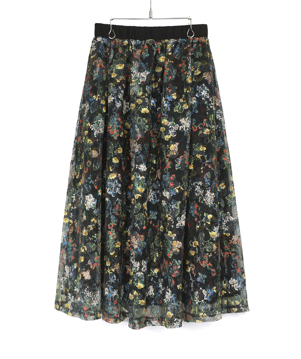 刺繍レースプリントロングスカート