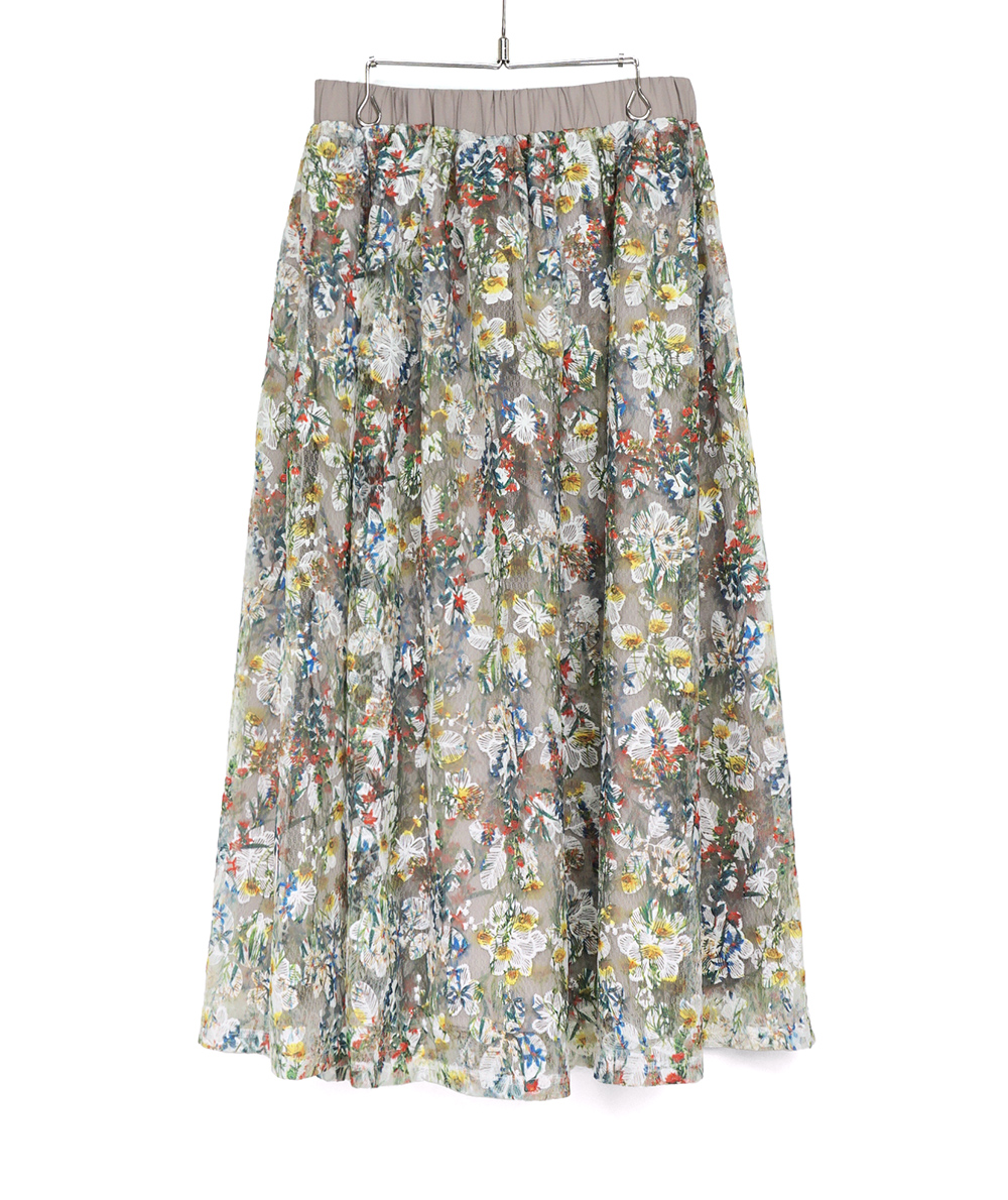 - 刺繍レースプリントロングスカート