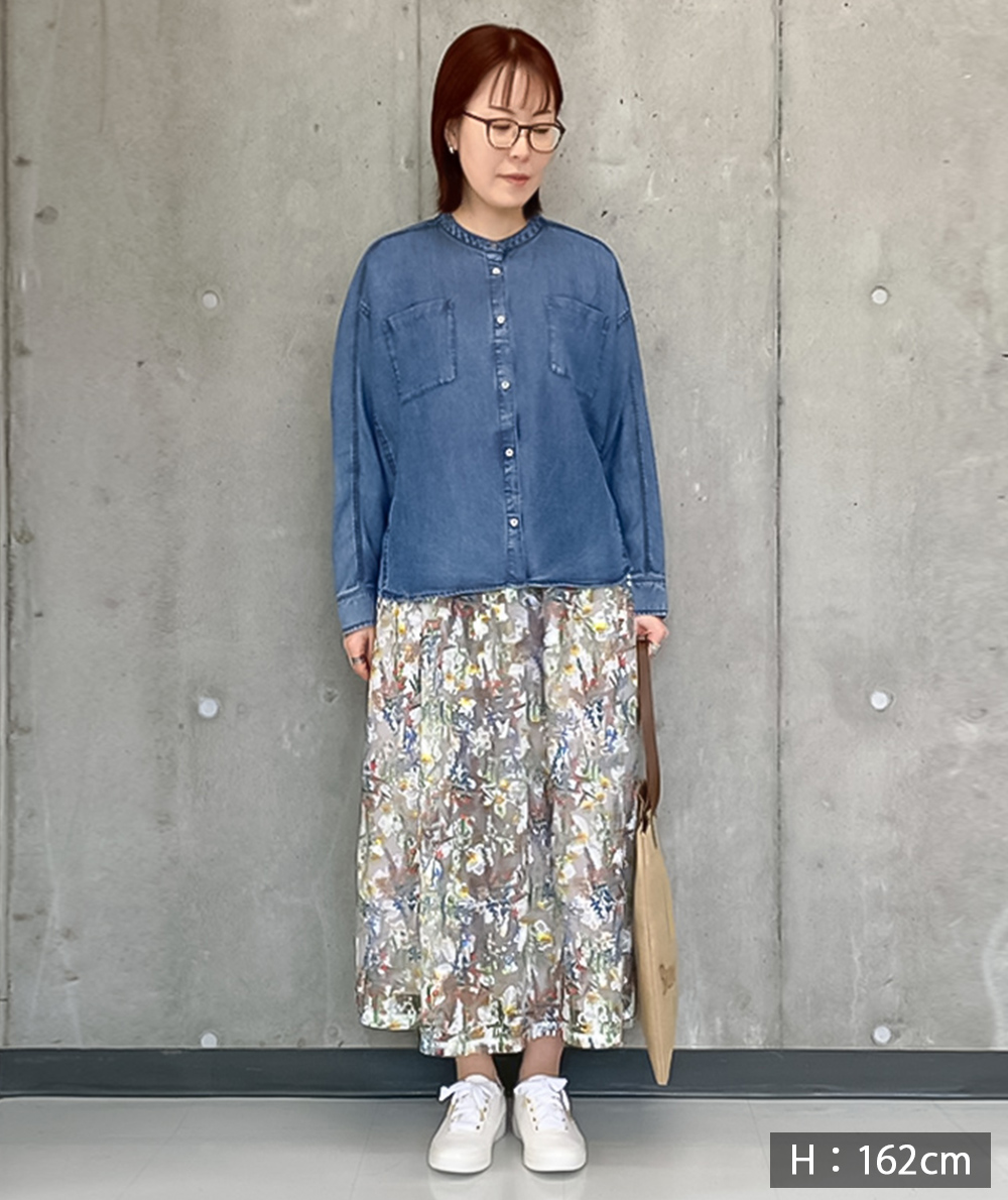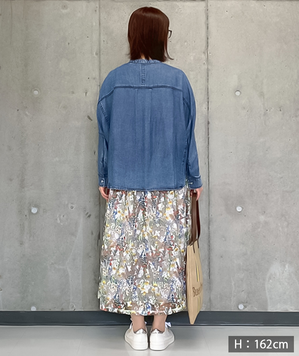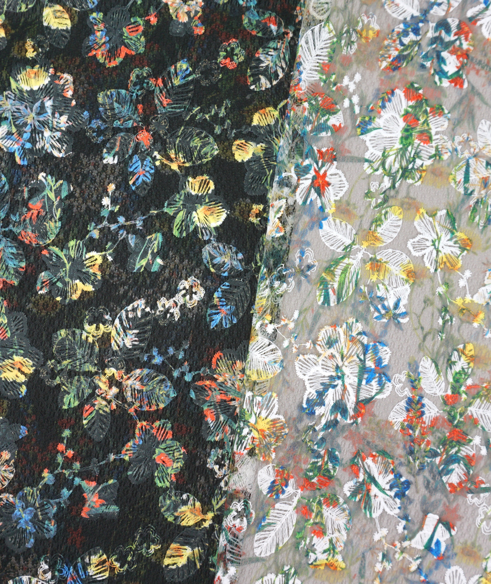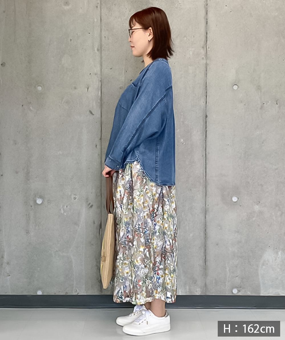 刺繍の上にフラワープリントを施した見栄えするスカートは1枚で華やかになるアイテムです。程よいボリューム感でニットやカットトップスと合わせたデイリースタイルにもおすすめです。