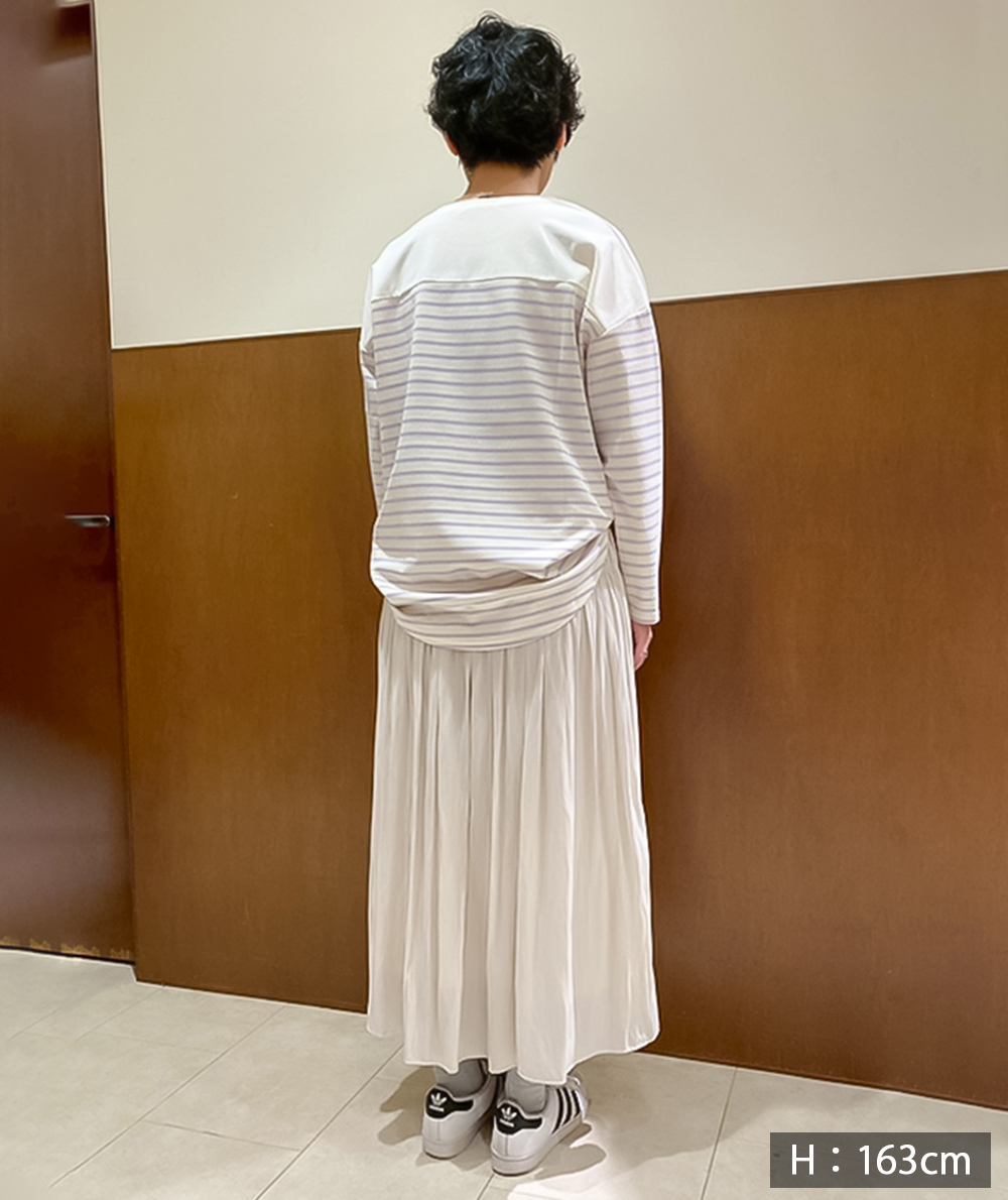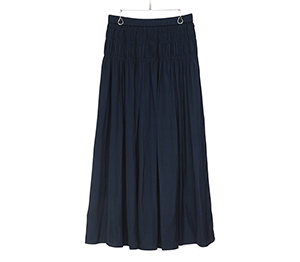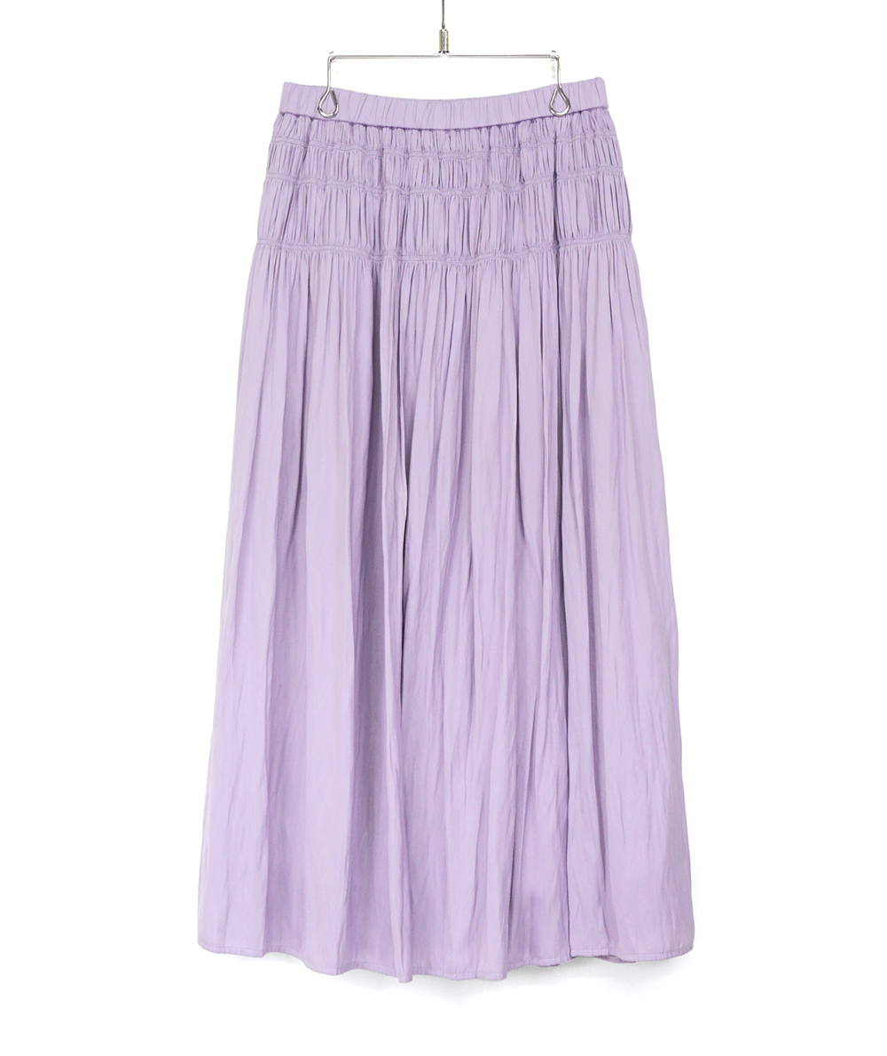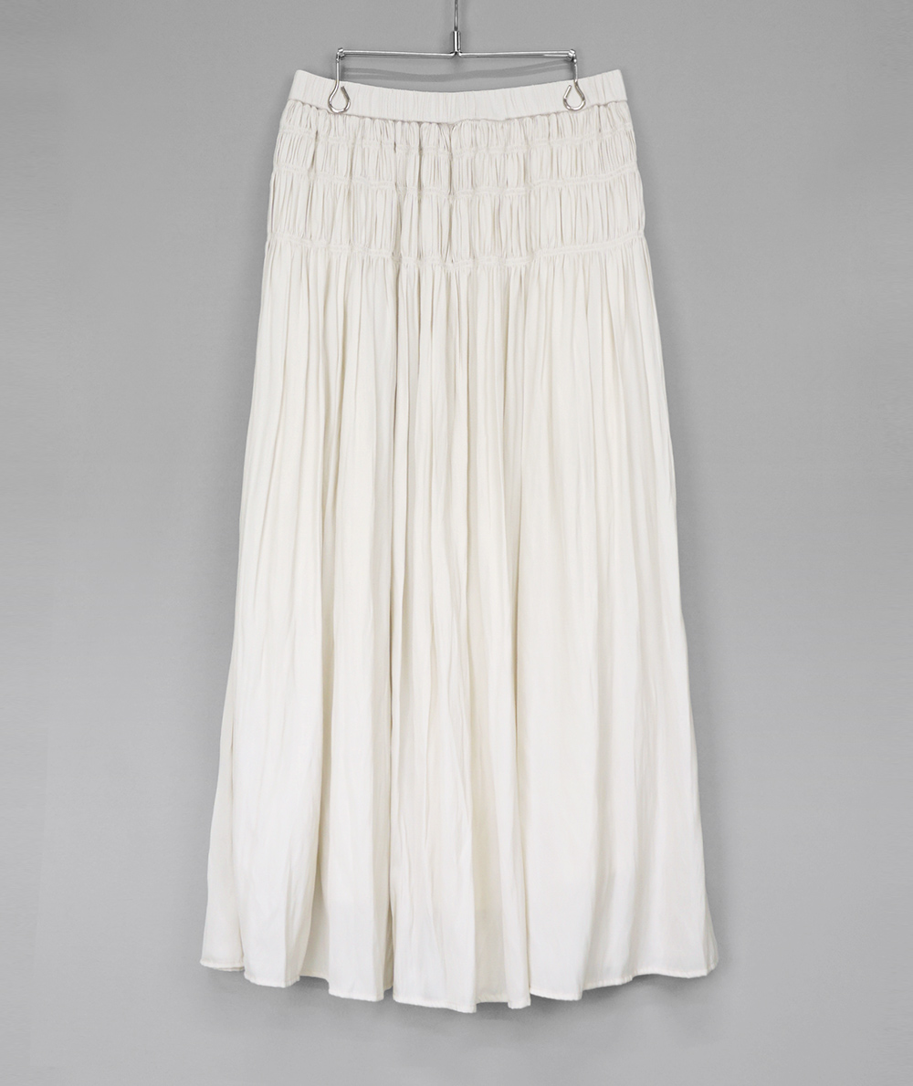 人気のカッセンロングスカートやトレンド感のあるシャーリング使いがポイントです。柔らかい素材なので広がりすぎず軽やかですっきりとしたシルエット。シンプルなTシャツやニットを合わせるだけでコーディネートが華やぐ存在感のある一枚です。