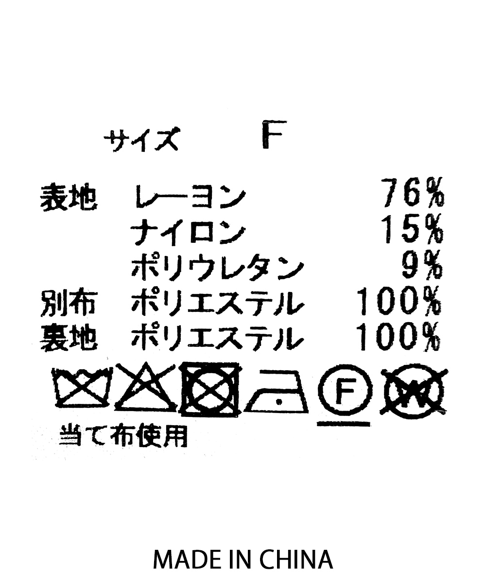 表地:レーヨン 76% / ナイロン 15% / ポリウレタン 9%