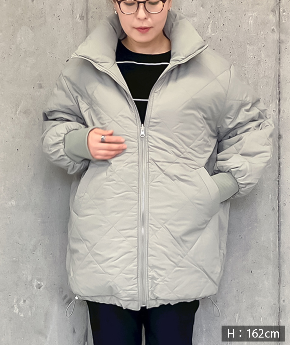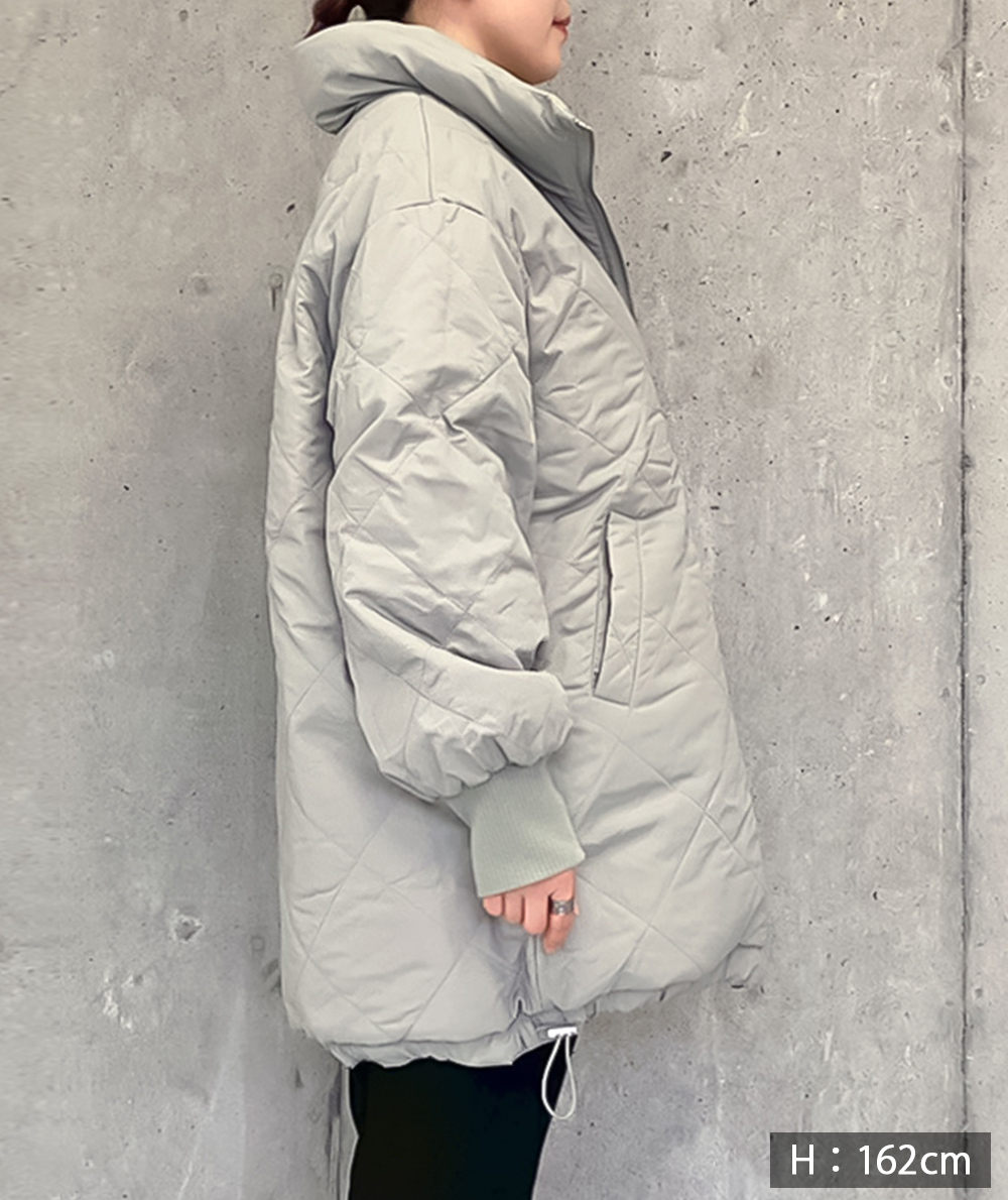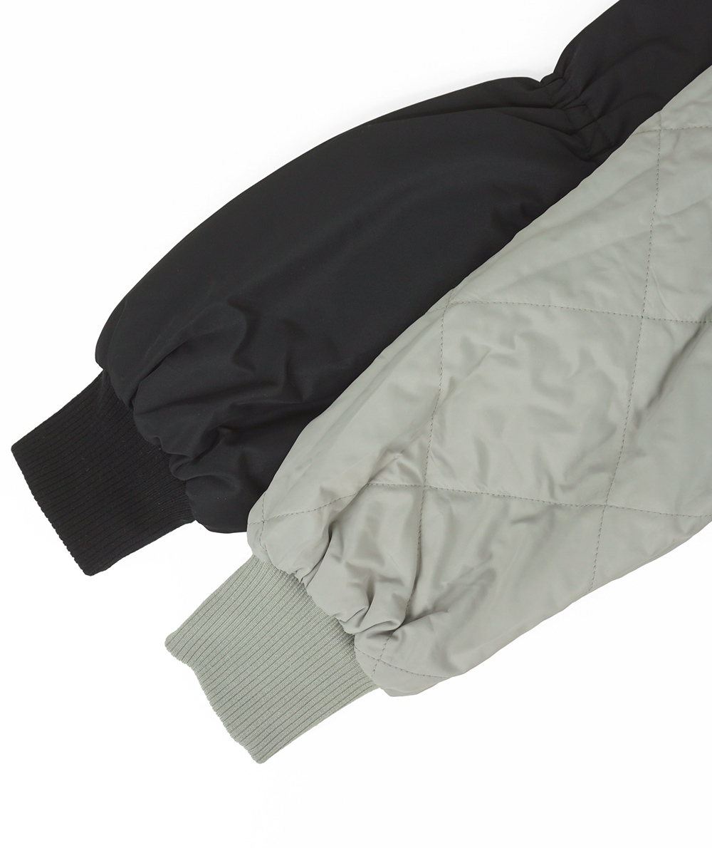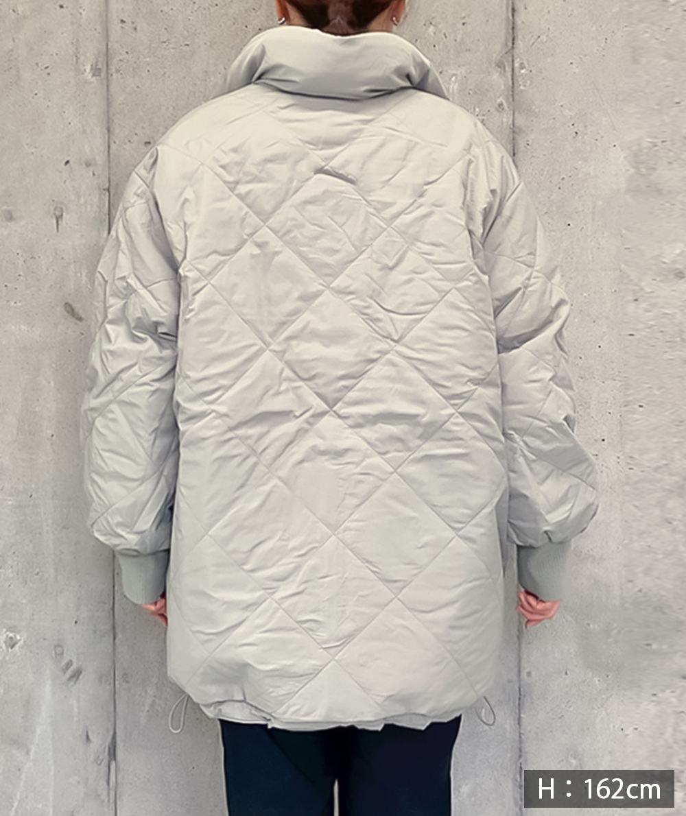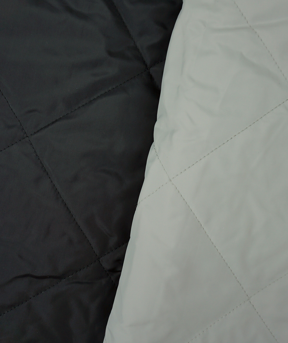 吸湿・発熱・保温機能のある中わたを使用したリバーシブルジャケット。マットな質感の素材は肌触りがよく、持った時に見た目以上の軽さを実感して頂けます。衿にはふっくら感が出るようにわたが入っているので、マフラーなしでも暖かいです。キルトがない面はウエストや袖を絞ってスッキリシルエットに、キルトがある面はオーバーサイズでよりカジュアルに。気分によって表裏着回して頂けます。