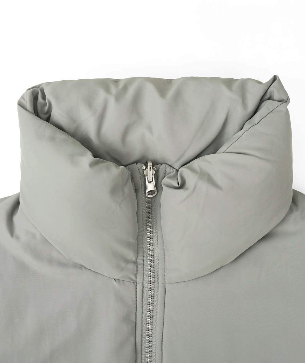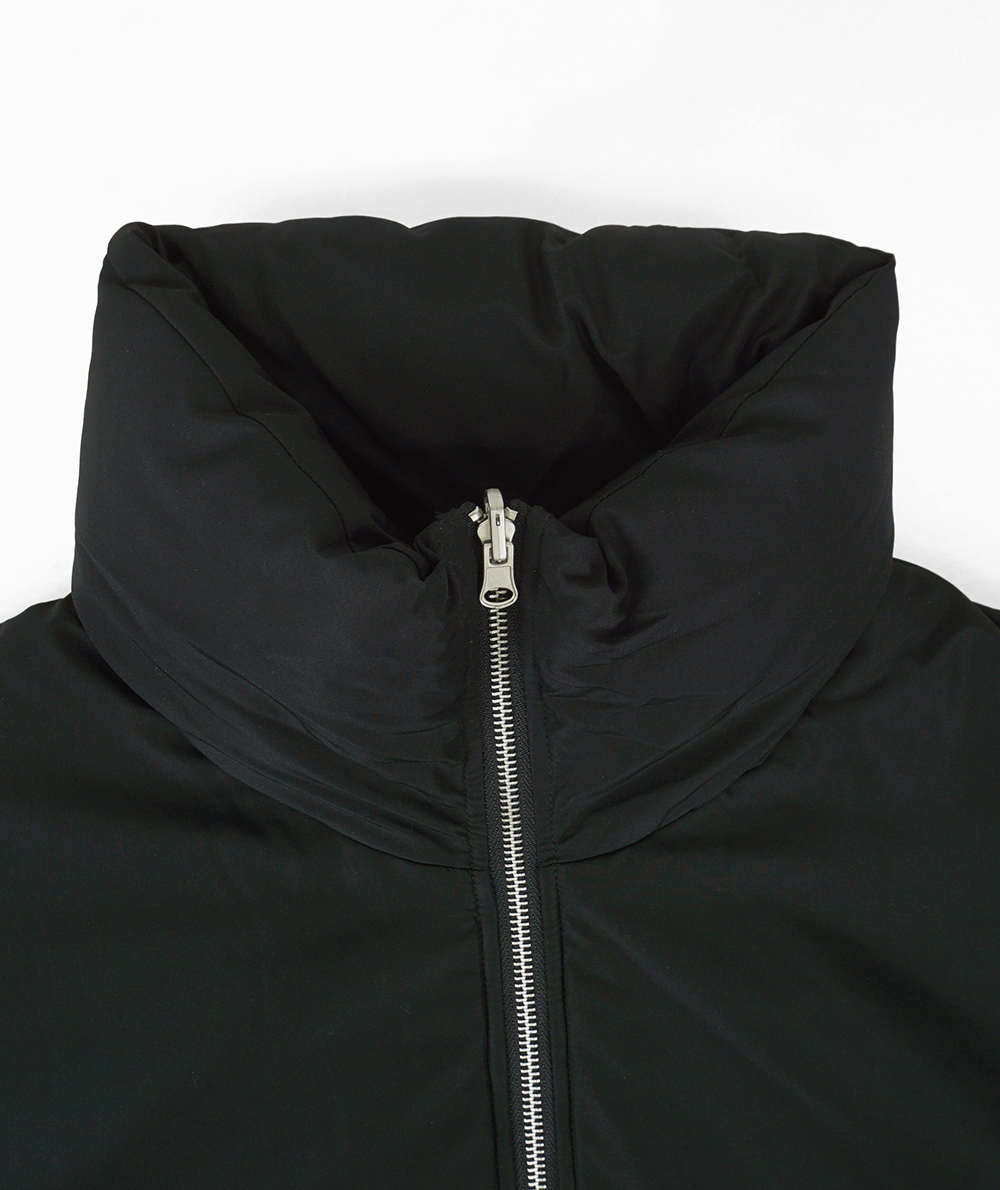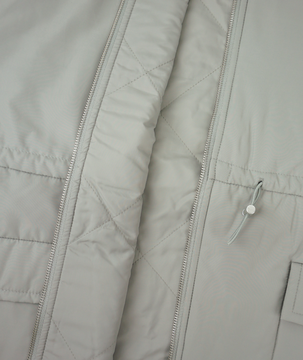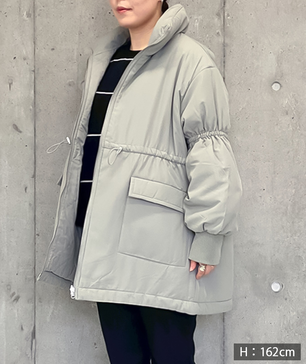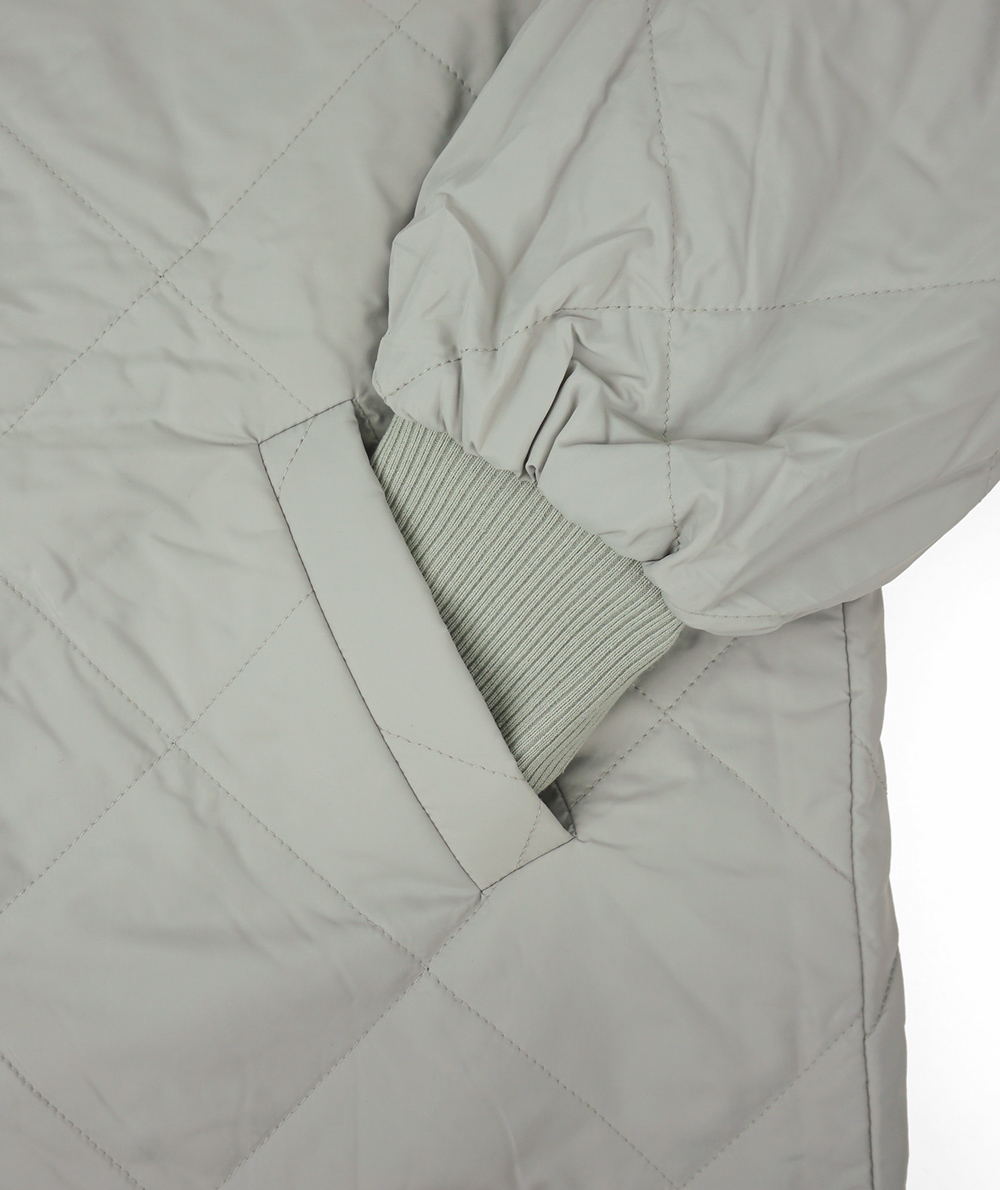 吸湿・発熱・保温機能のある中わたを使用したリバーシブルジャケット。マットな質感の素材は肌触りがよく、持った時に見た目以上の軽さを実感して頂けます。衿にはふっくら感が出るようにわたが入っているので、マフラーなしでも暖かいです。キルトがない面はウエストや袖を絞ってスッキリシルエットに、キルトがある面はオーバーサイズでよりカジュアルに。気分によって表裏着回して頂けます。