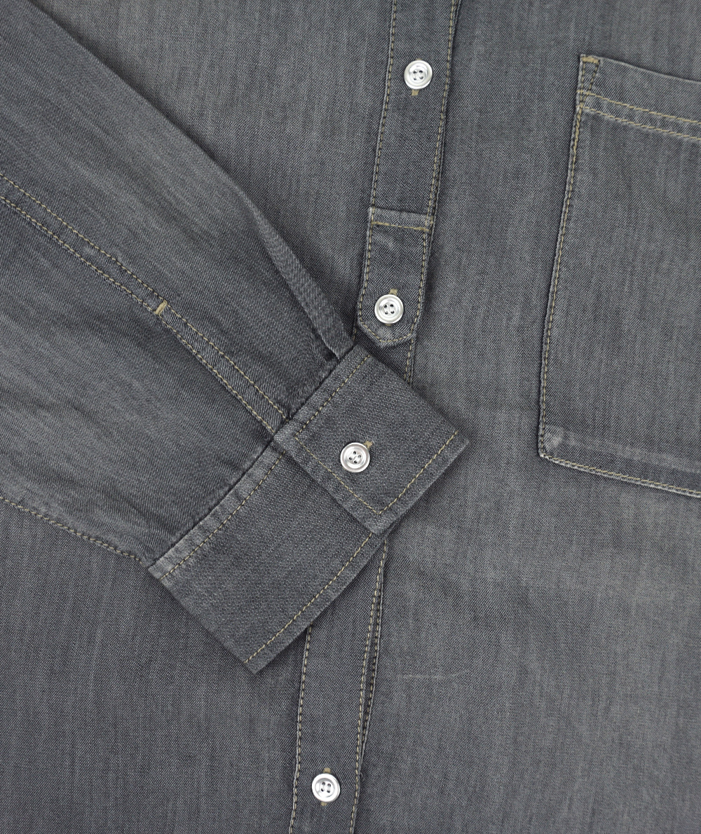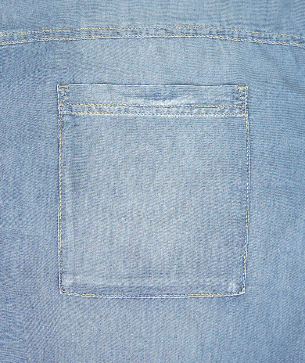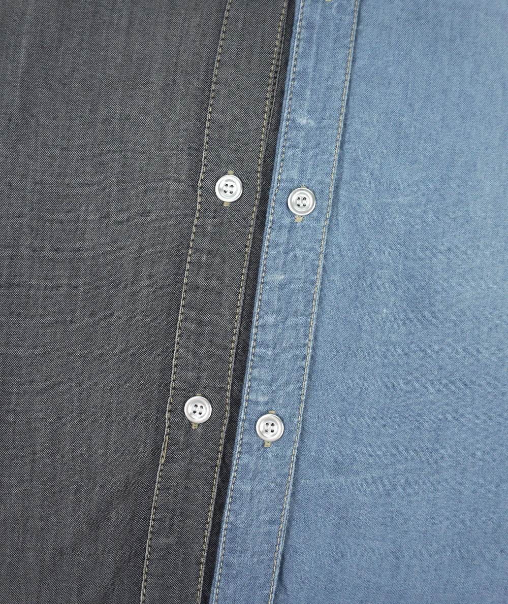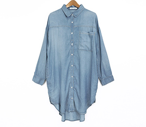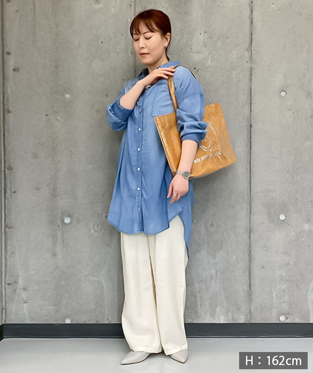 トレンドのシアーデニムを使用した羽織シャツワンピース。薄い素材に加工を施し柔らかく雰囲気のある風合いに仕上げました。透けすぎない薄さで、春から夏・秋と長く着ていただけます。短めの着丈でボトムスとのレイヤードコーデがおすすめ。薄く柔らかな素材に触感冷感の加工を施しているので暑い夏の羽織りにピッタリ。加工は手作業でしているため、見え方が1枚ずつ違います。