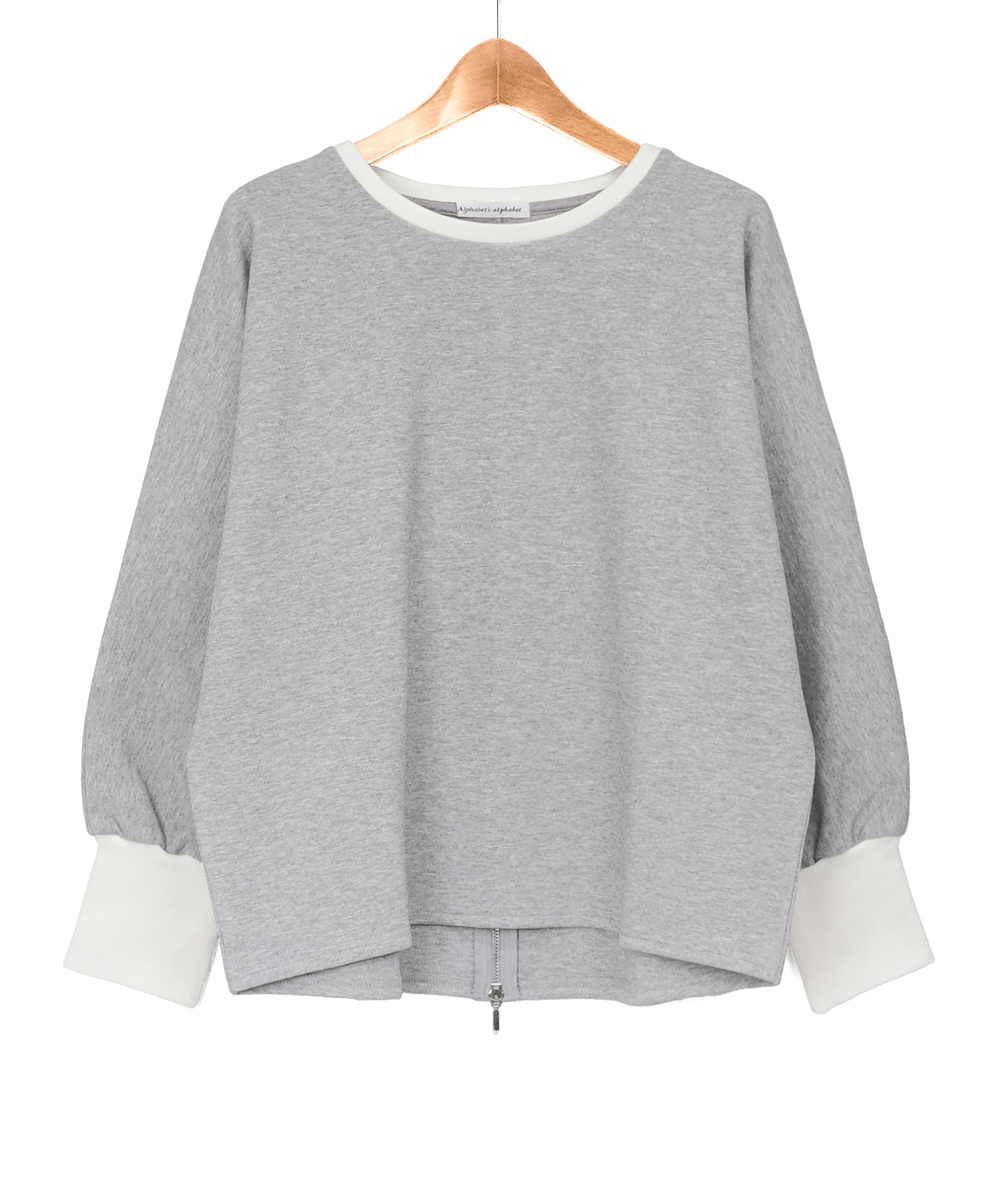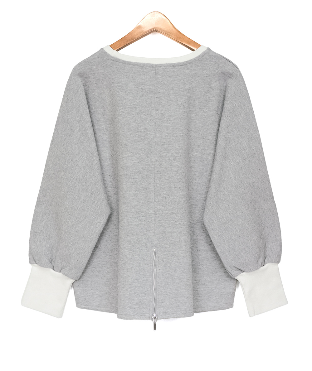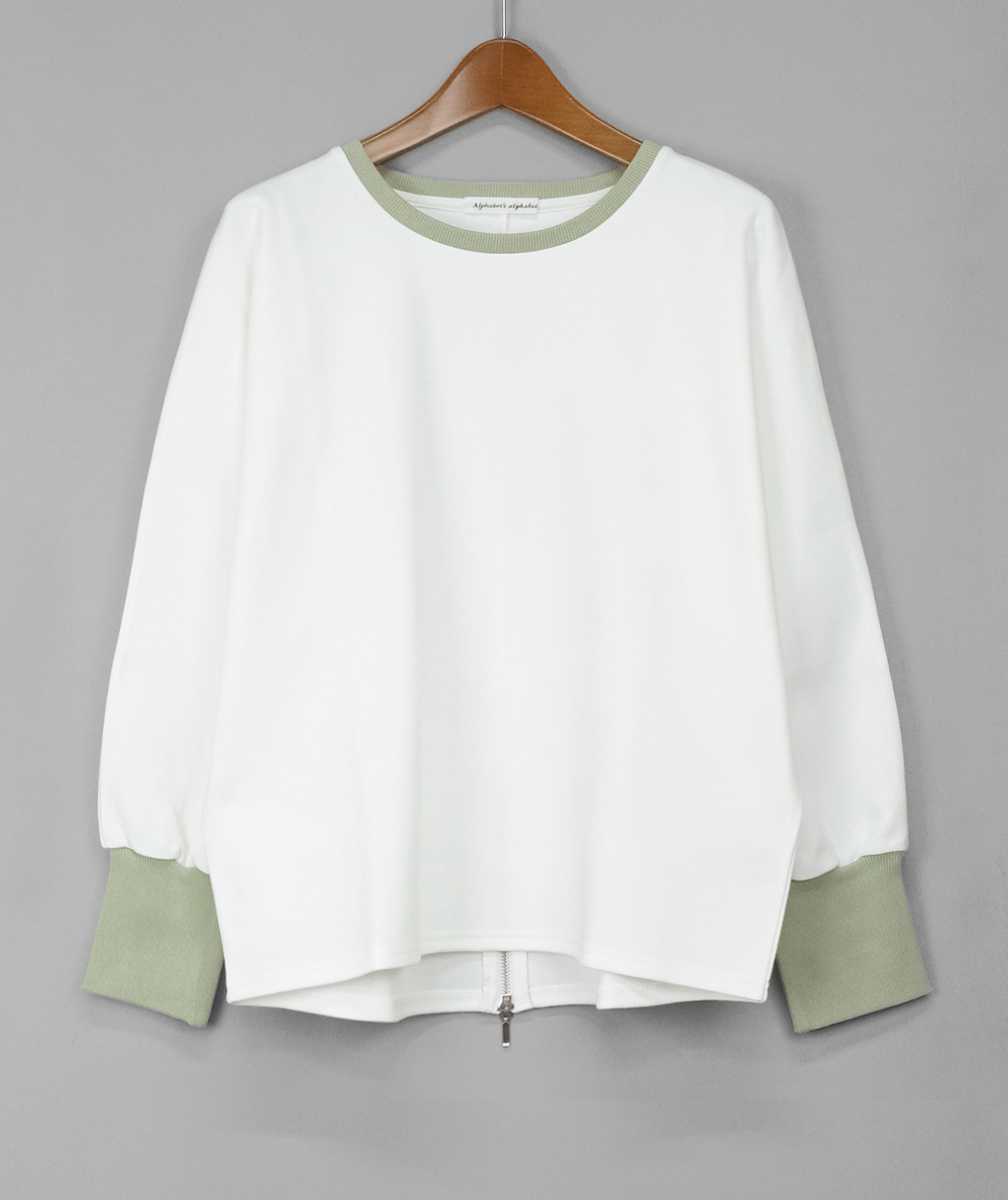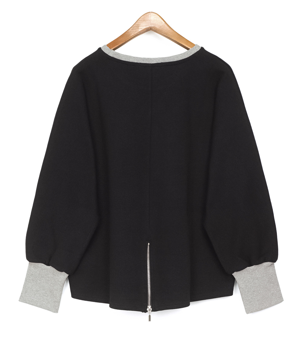 衿元とお袖の配色リブが映えるプルオーバーは、リラクシーなドルマンスリーブで体型をカバーしつつ、ルーズな雰囲気がこなれ感のある1枚。ジップを施したバックデザインでお好みで開閉できます。ジップを開けてスリット風に着ても素敵なデザイントップスです。