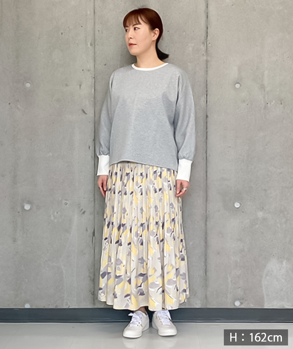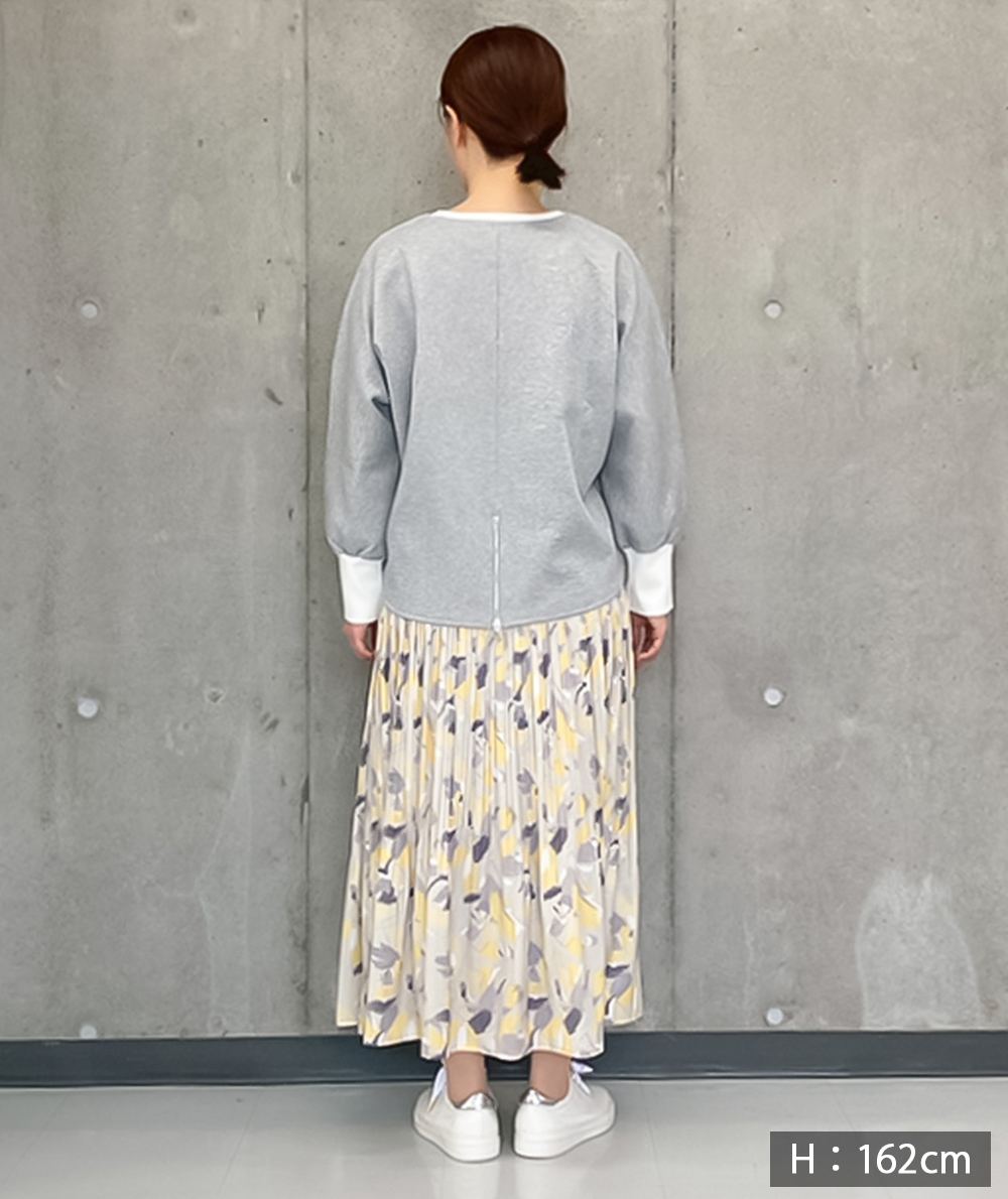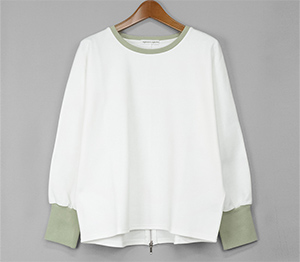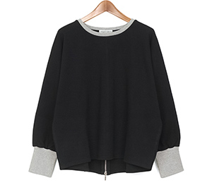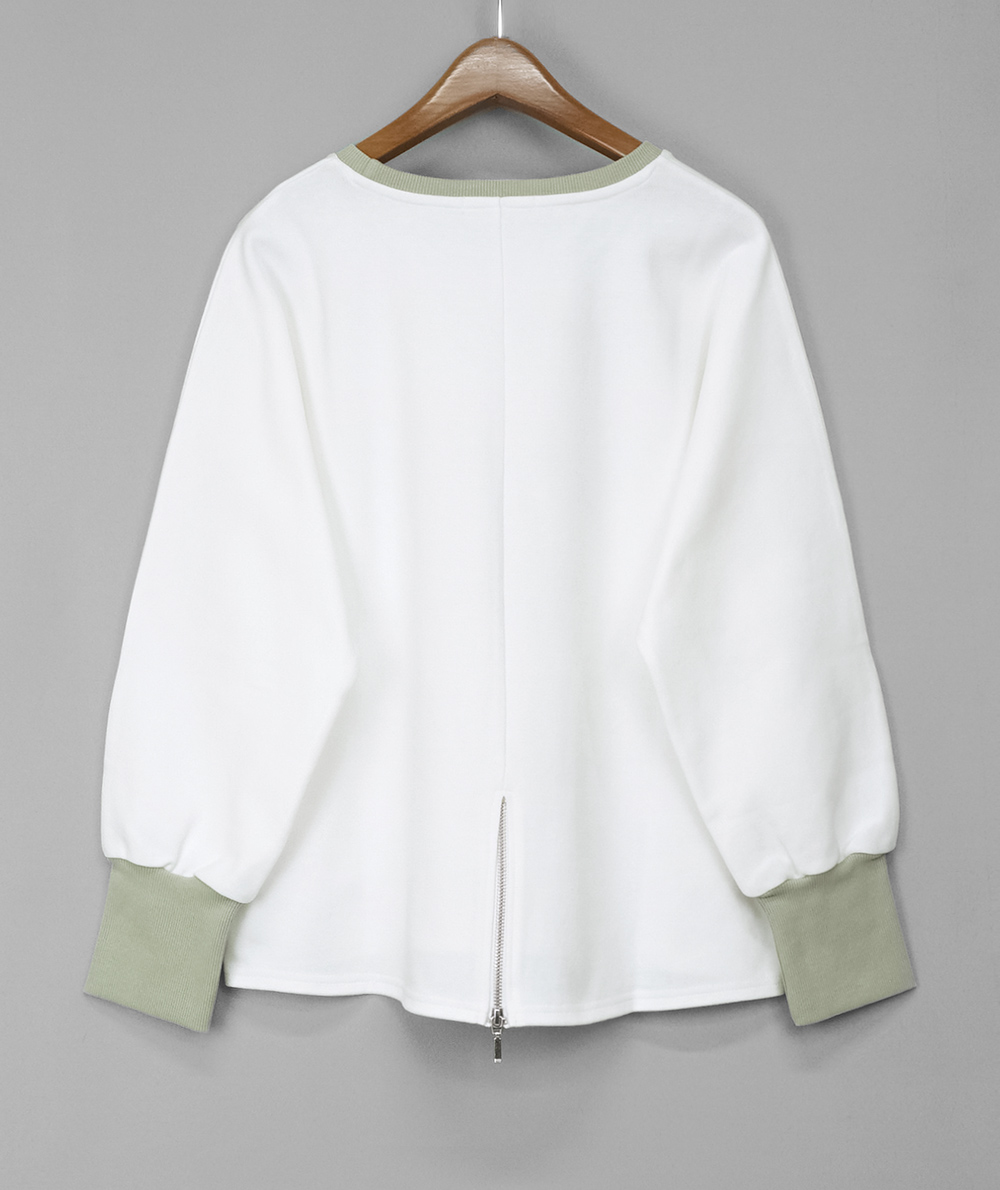 衿元とお袖の配色リブが映えるプルオーバーは、リラクシーなドルマンスリーブで体型をカバーしつつ、ルーズな雰囲気がこなれ感のある1枚。ジップを施したバックデザインでお好みで開閉できます。ジップを開けてスリット風に着ても素敵なデザイントップスです。