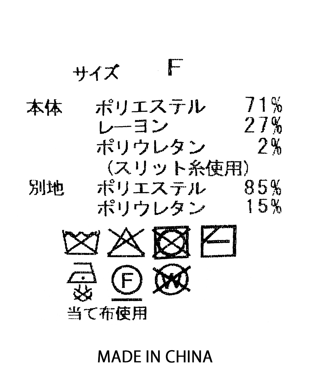 本体:ポリエステル 71% / レーヨン 27% / ポリウレタン 2%(スリット糸使用)