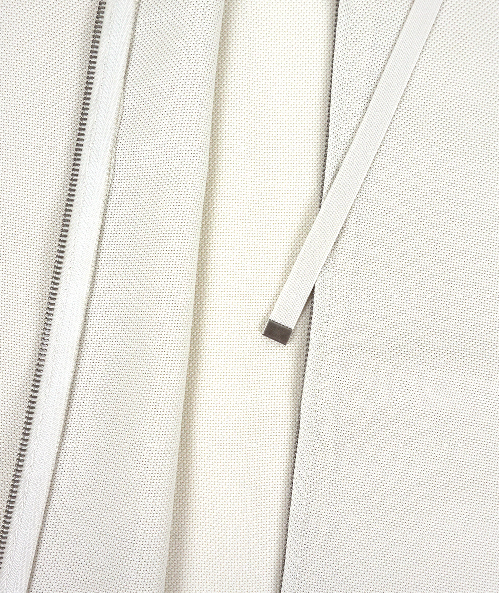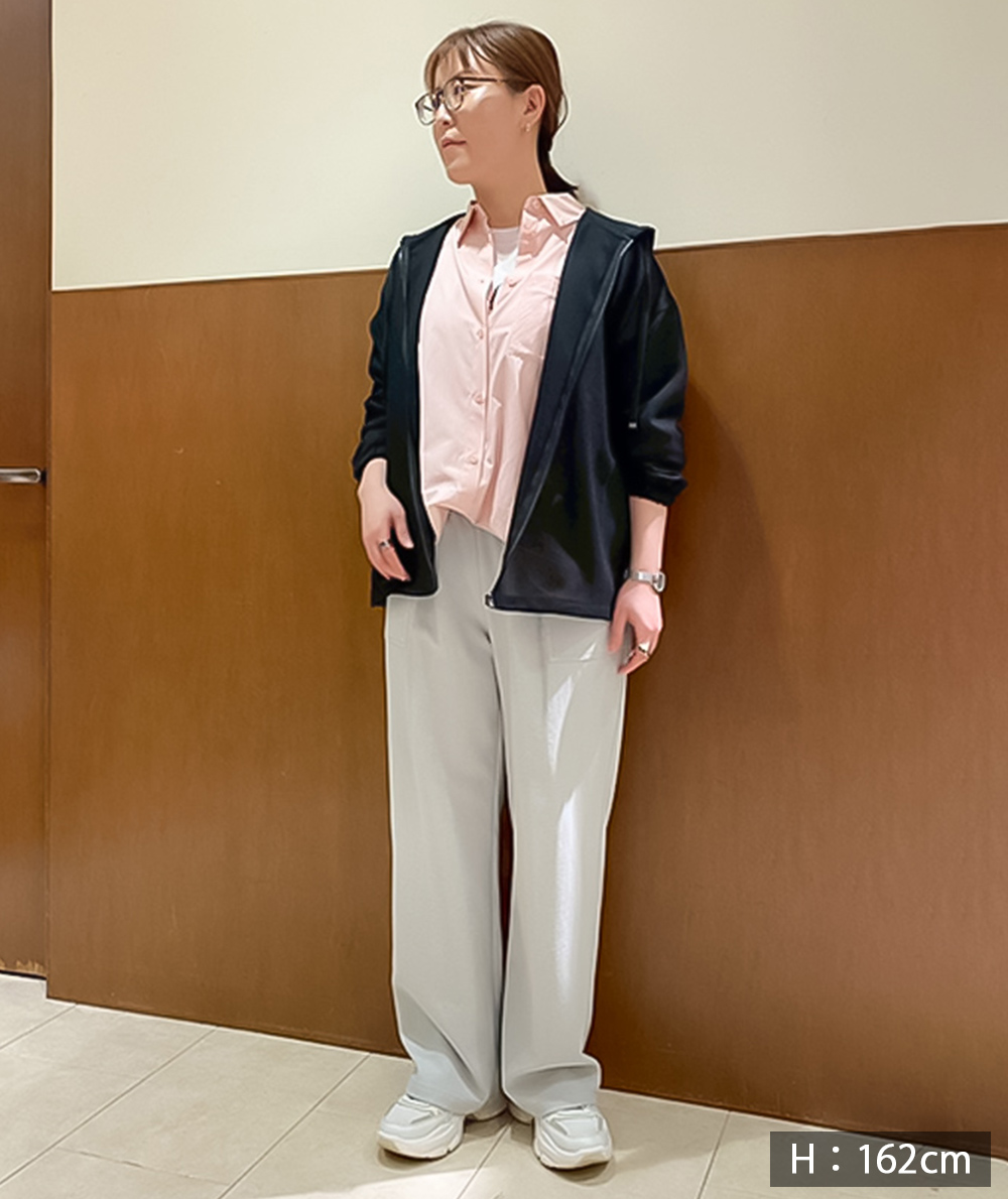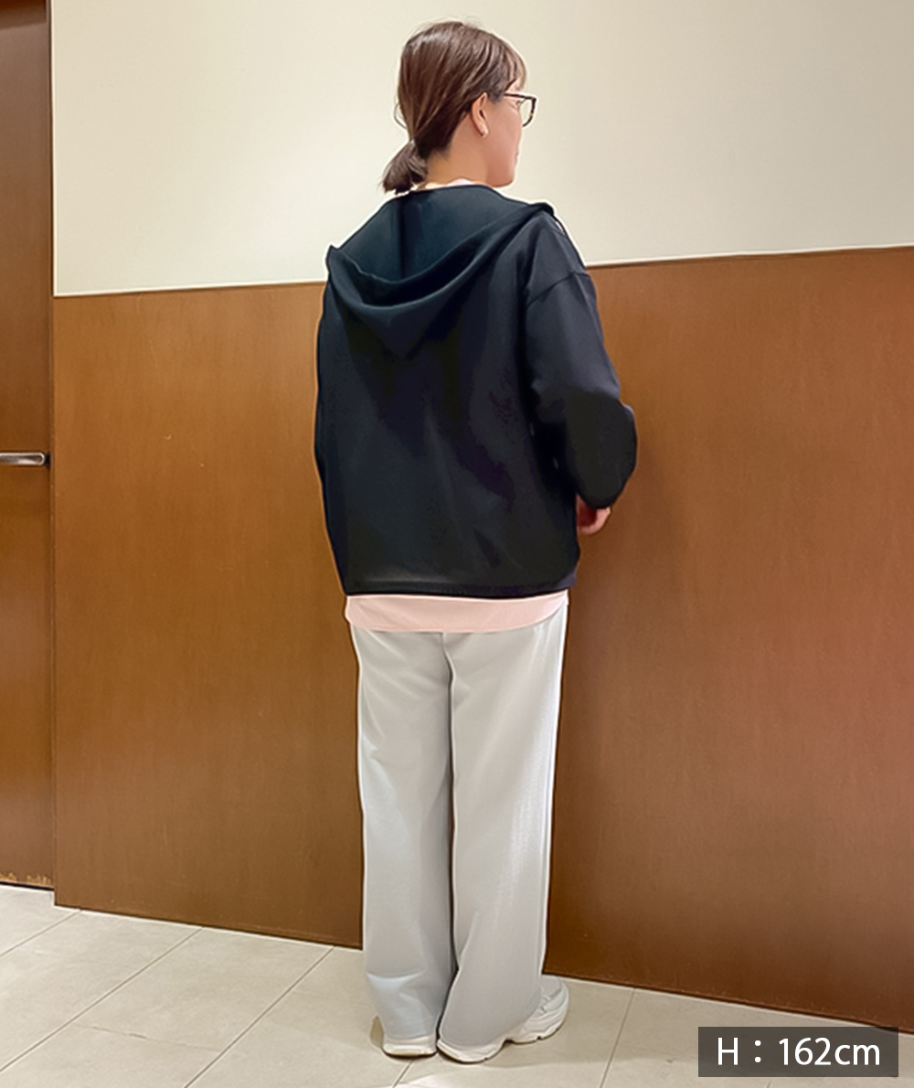 ほんのり張り感のあるメッシュ素材のジップパーカーはロゴTなどとレイヤードがおすすめです。細かいメッシュなので、インに着ているお洋服が透けすぎず大人の方にも取り入れていただきやすいです。ゆるめのシルエットが程よい抜け感を演出してくれます。軽く羽織るだけでおしゃれ感のあるパーカーです。