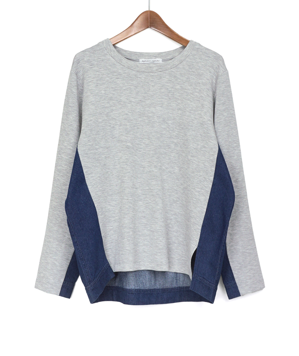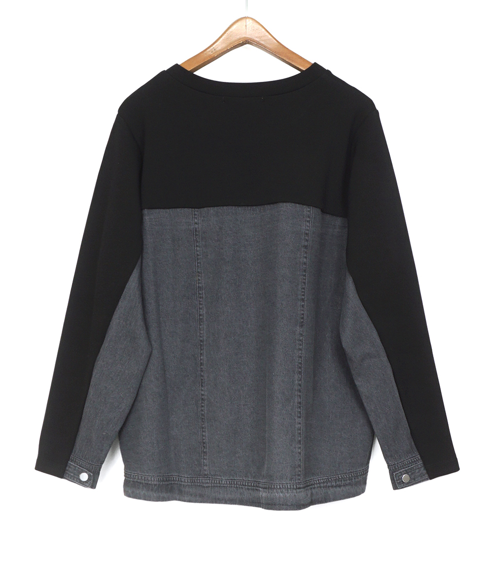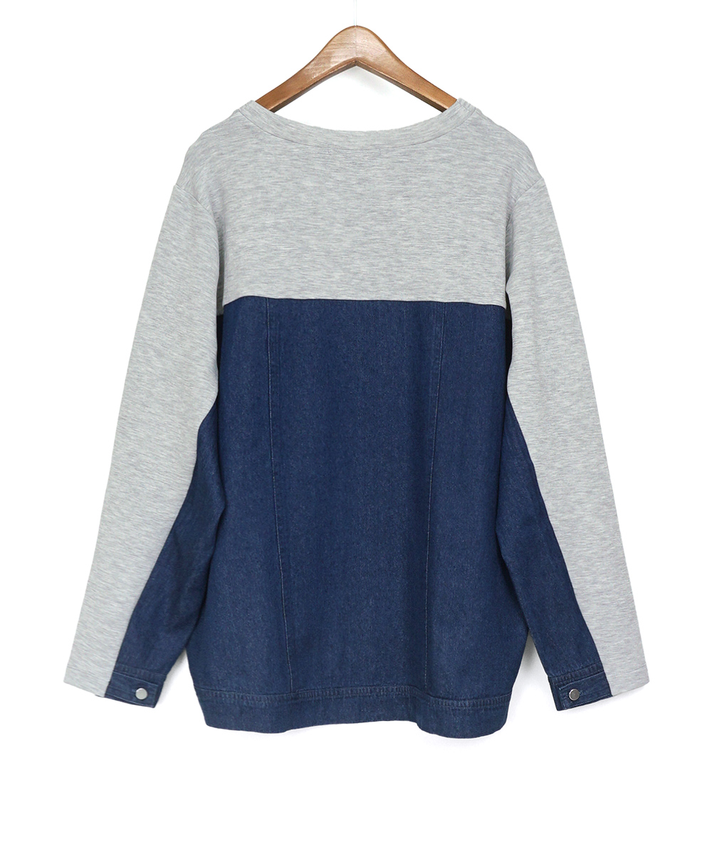 ポンチ素材とデニムがドッキングされたトップスはコーディネートに取り入れるだけでアクセントになります。加工されたデニムが今年らしいビンテージ感を演出し、大人のデイリースタイルに合わせて頂けます。
