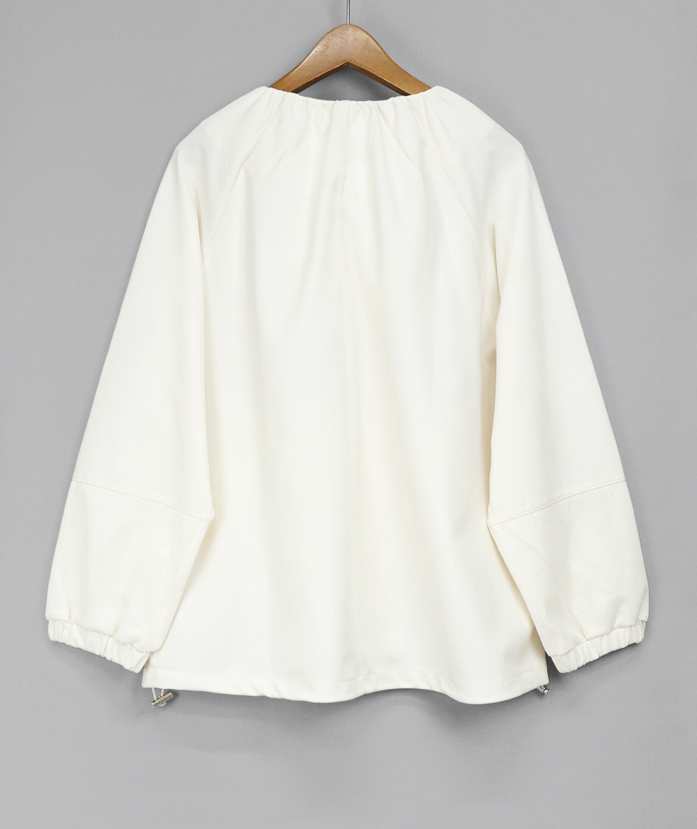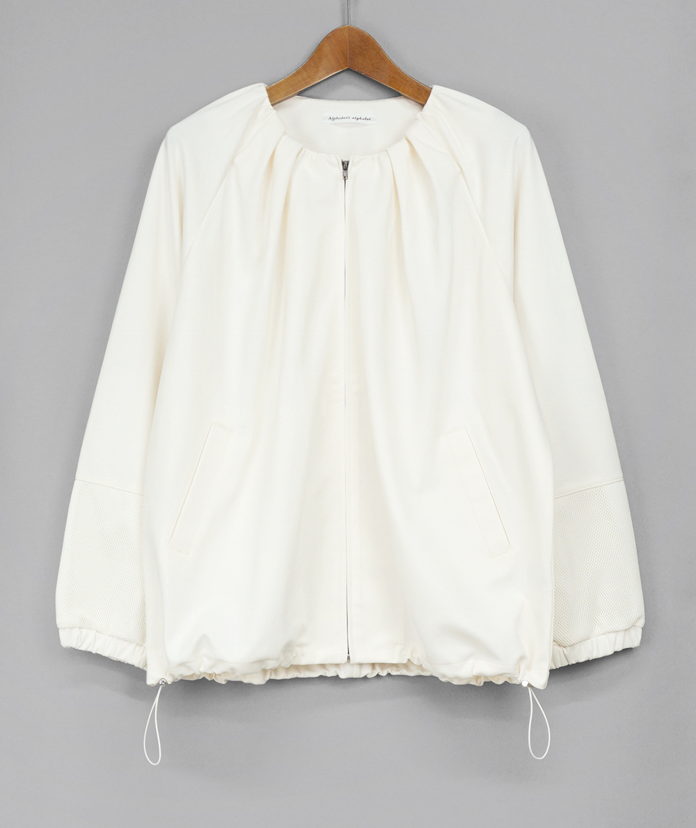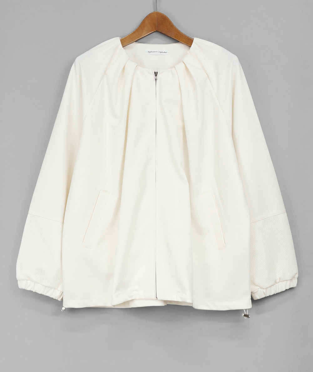 お袖の一部がメッシュになったZIPカーディガン。薄手のカット素材を使用しているので、室内用のカーディガン感覚で着ていただけます。寒暖差のある季節はアウターのインにも着やすいです。腰回りが隠れる着丈でパンツやスカートなどボトムのスタイルを問わず合わせていただけます。