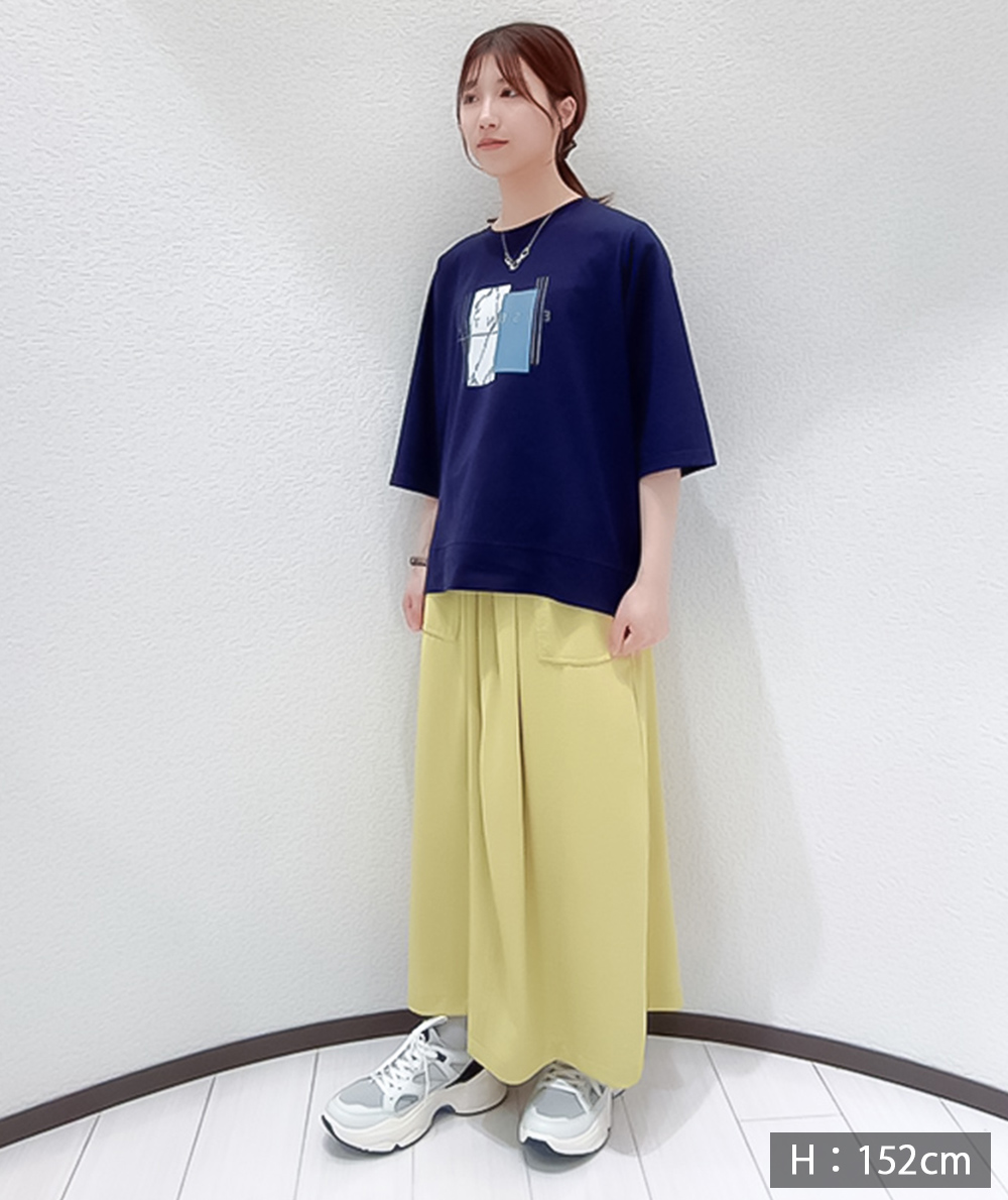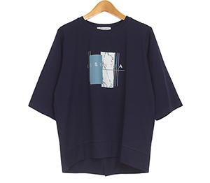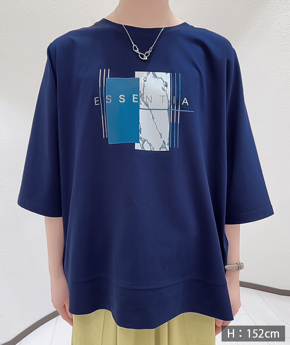 アート調のプリントが他にはないプリントTシャツは、肘が隠れる袖丈と接触冷感素材で今から夏まで快適に着ていただけます。ロゴよりもカジュアルすぎず、無地のコーディネートにも映える一枚です。前後差のある着丈と後ろスリットでインせず決まるトップスです。