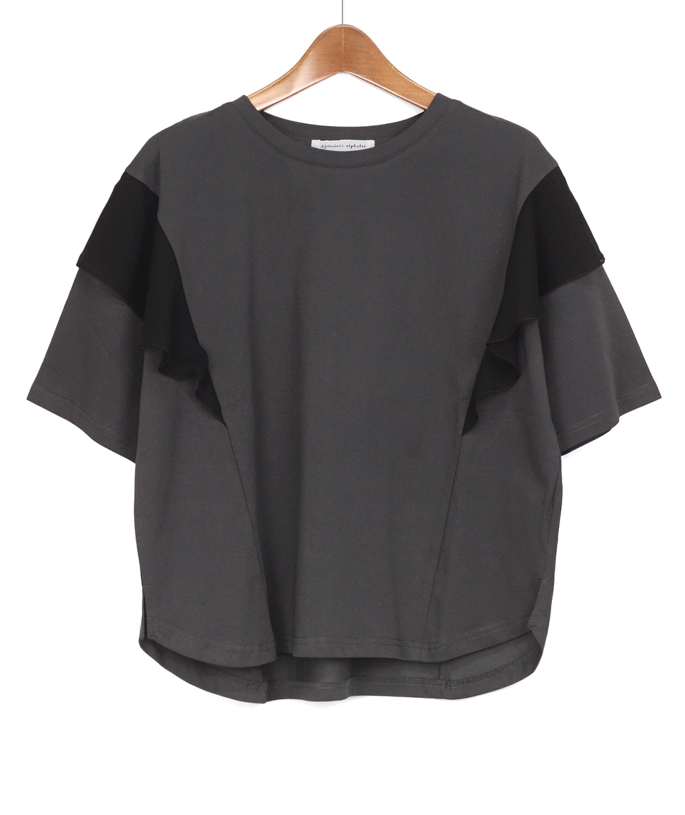 ■肩回りに異素材のフリル付き