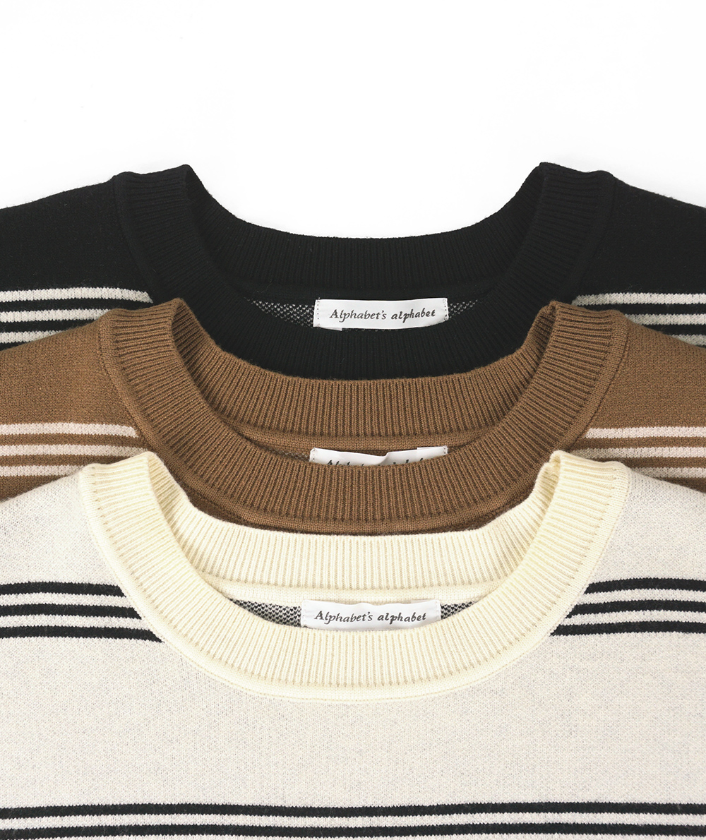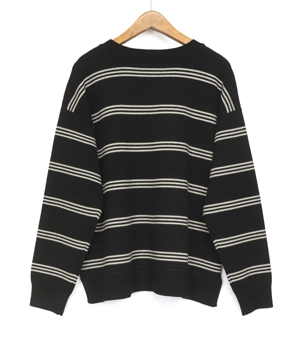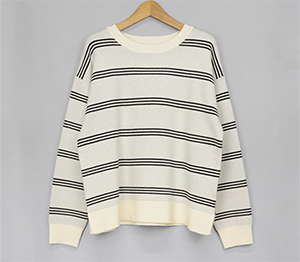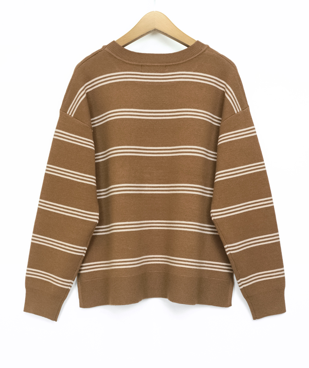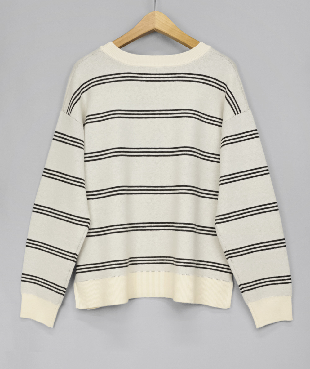 程よい厚さのマルチボーダーニットは、ボトムスとのバランスをとりやすいように腰くらいの丈に仕上げています。両脇にスリットを入れているので腰回りにゆとりがあり、気になるお腹もカバーしてくれます。ラフに見やすいボーダーもニットで仕上げているため、程よい大人カジュアルな雰囲気に仕上がっています。カジュアルなデニムからマニッシュなワイドパンツやレディライクなロングスカートまで幅広く合わせていただけます。