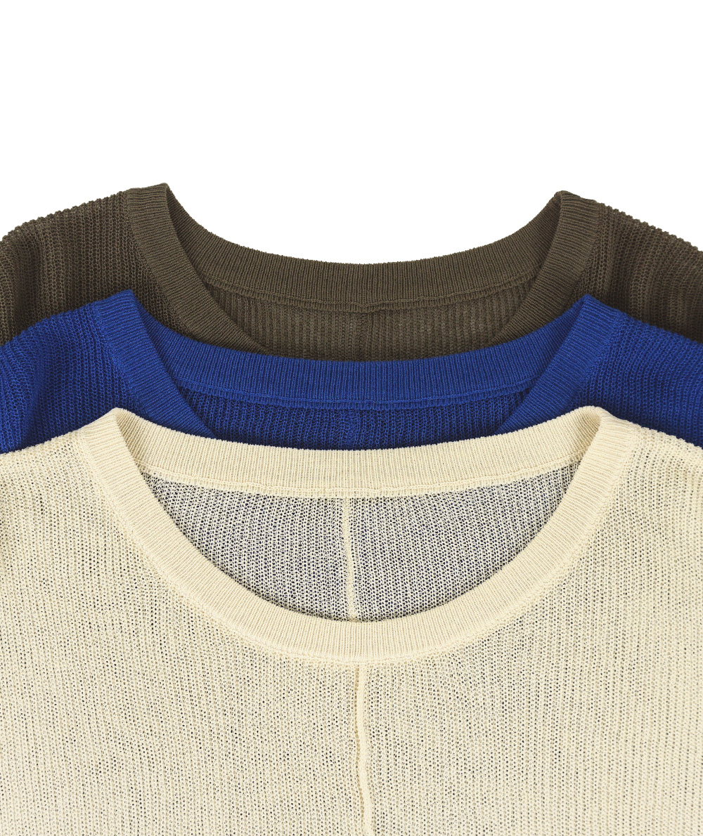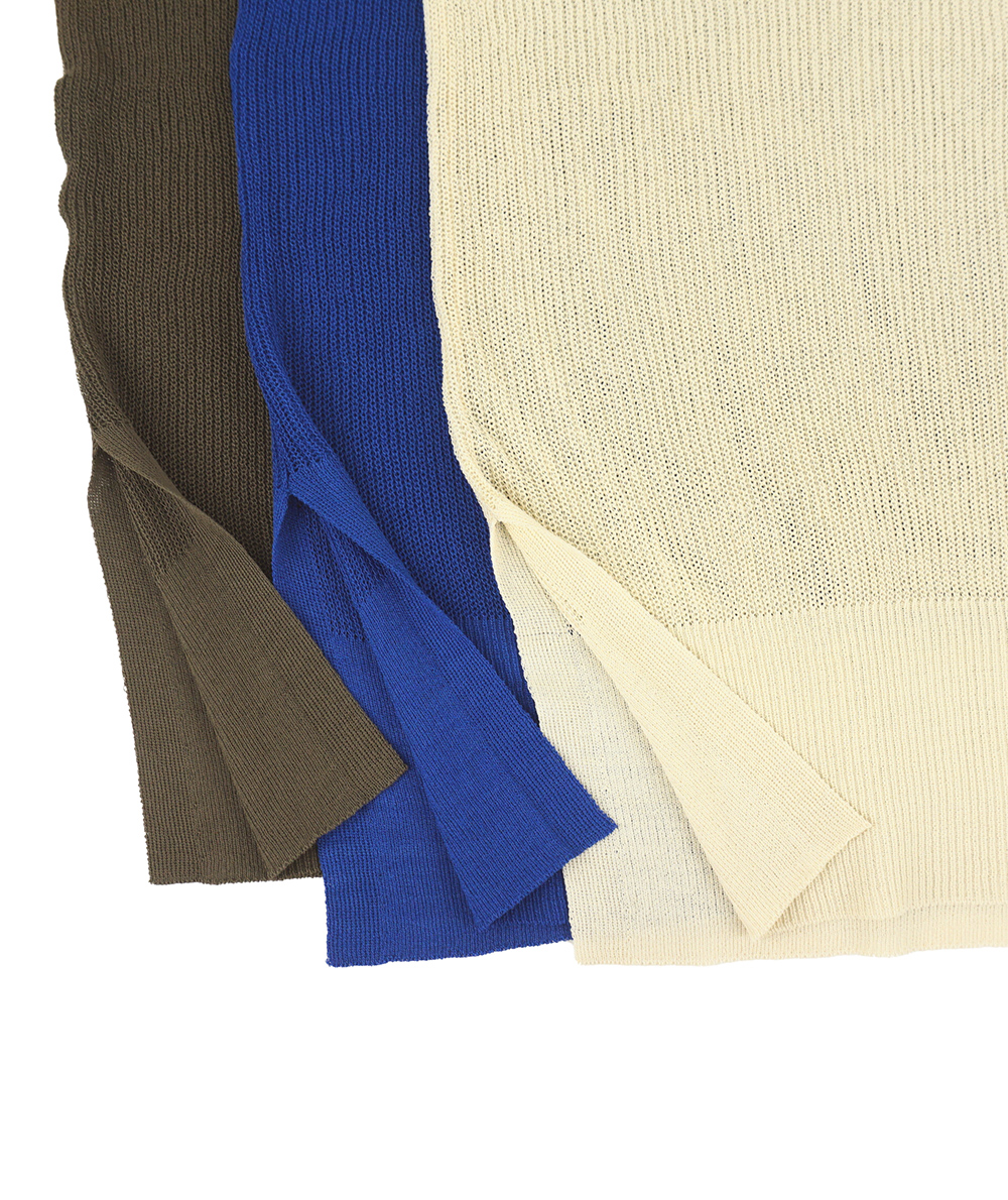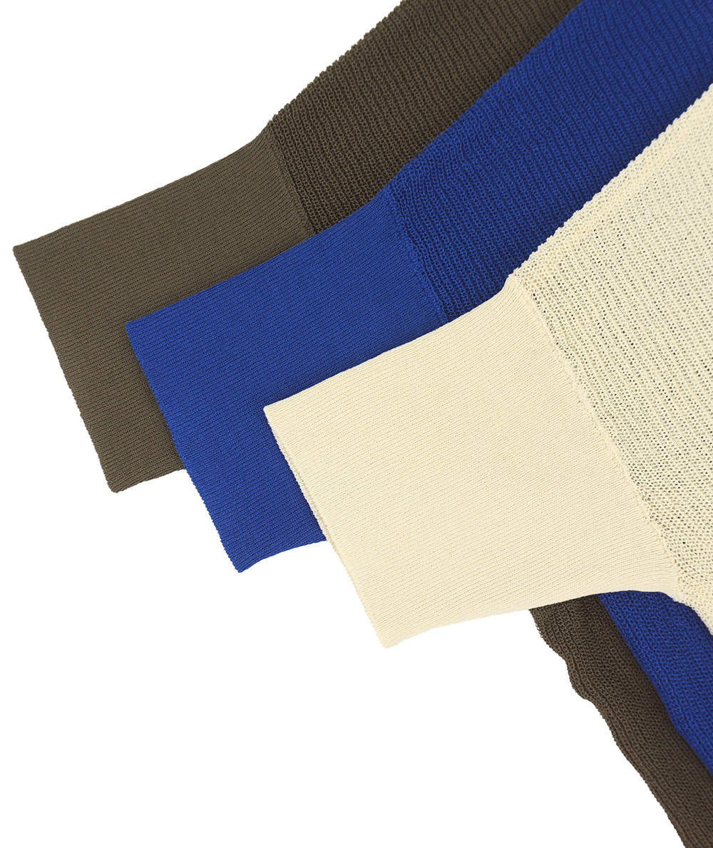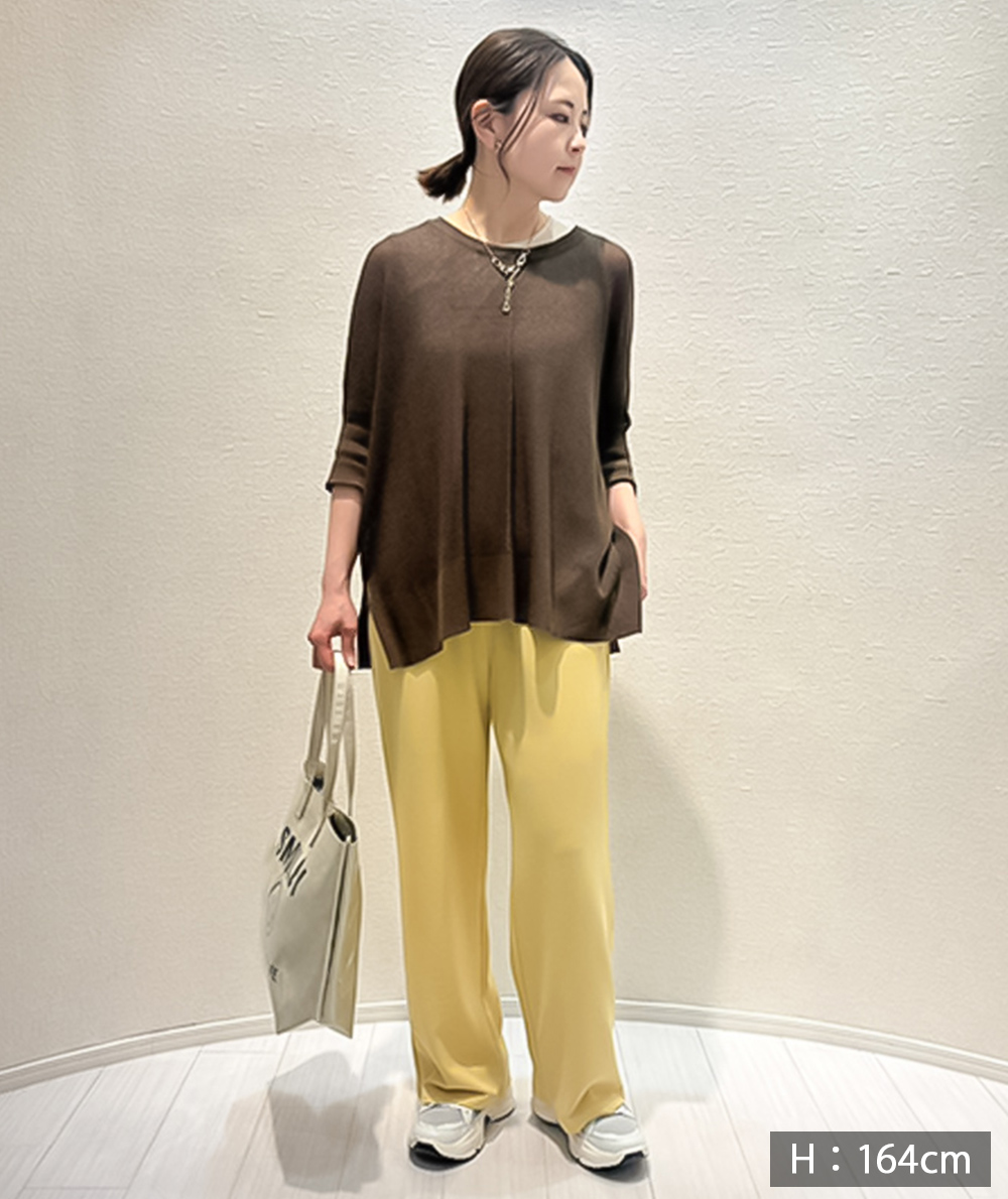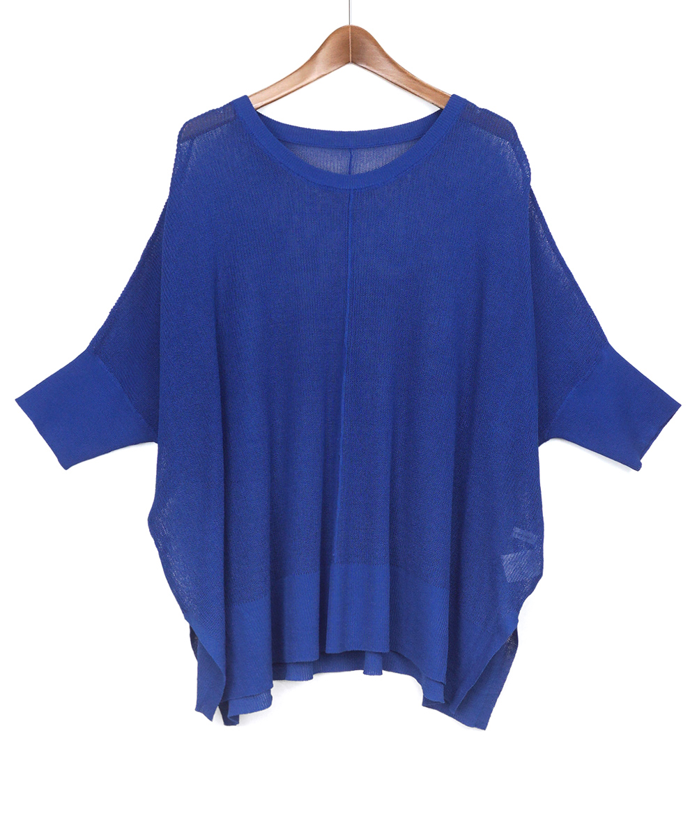 UVカット・接触冷感の機能糸で編んだニットはBOXシルエットで身体のラインをひろわないデザイン。お袖はソフトフィットのリブ仕様。身幅はゆとりがありますが、お袖はフィットしてるのですっきり見えします。やや透け感があるのでインに合わせるもの次第で着回しの幅が広がります。インナーは裾からレースを合わせるトレンドのコーディネートもおすすめです。ボトムスを選ばないので着回しのきくアイテムです。