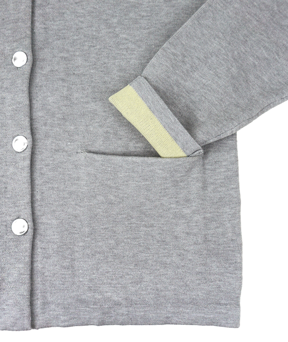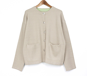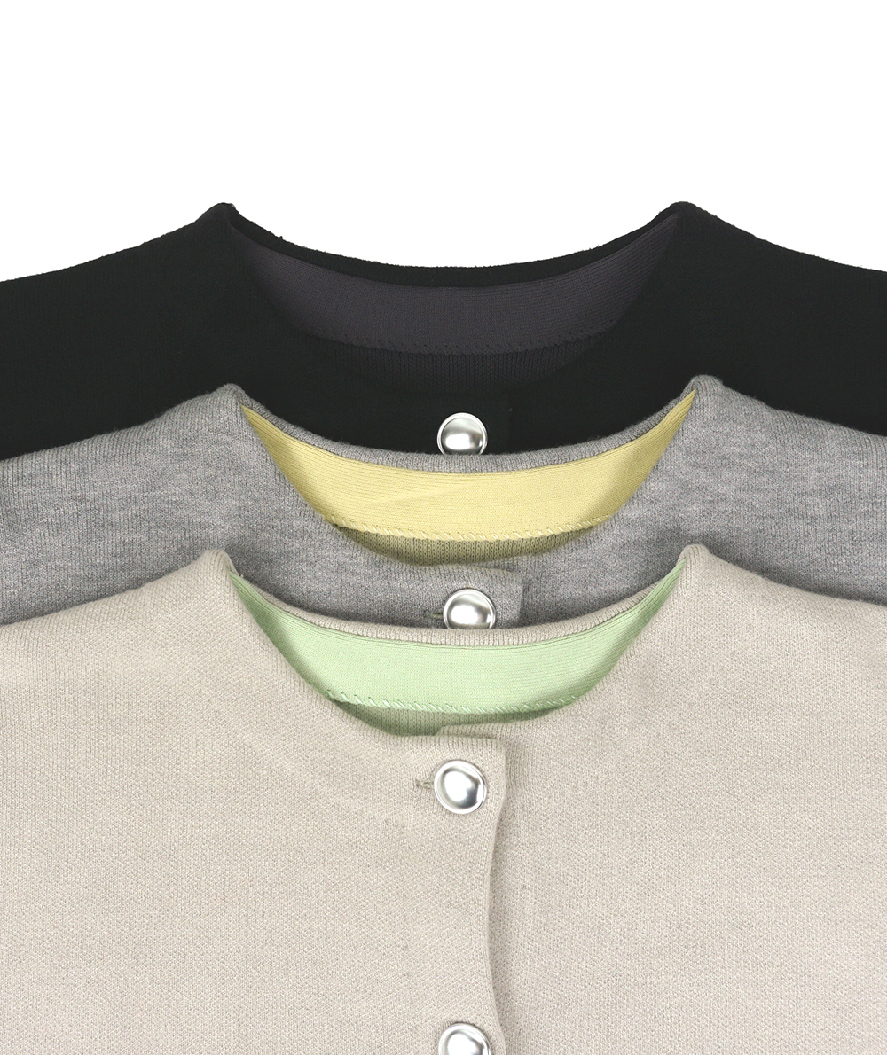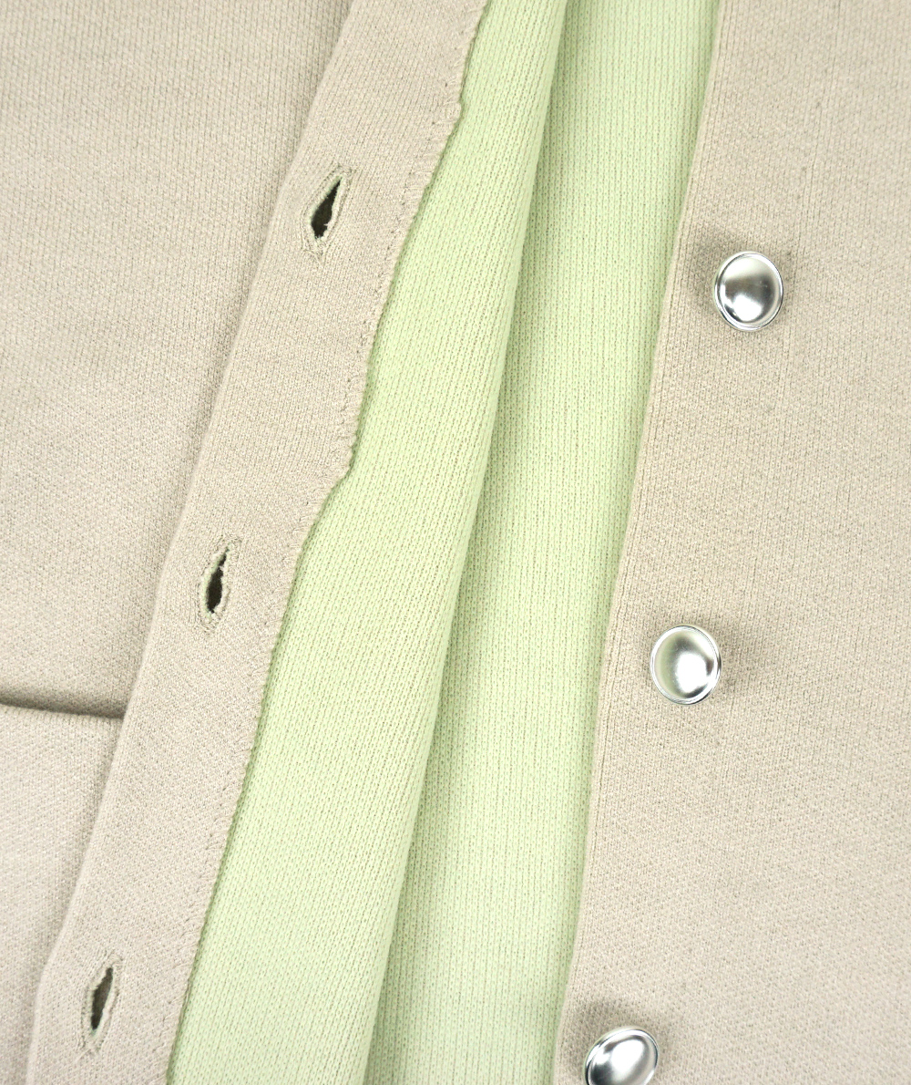 周りと差がつく裏配色ニットカーディガン。袖口をまくって裏面を見せると配色が見えて垢抜けた印象に。大きめの釦がポイントになり、ちょっとしたお出かけにもおすすめです。前を閉めてトップスのように着たり、ワンピースやロンTの上に羽織ったりと着回しが効くのも魅力。端境期のライトアウターとしてもおすすめしたいアイテムです。