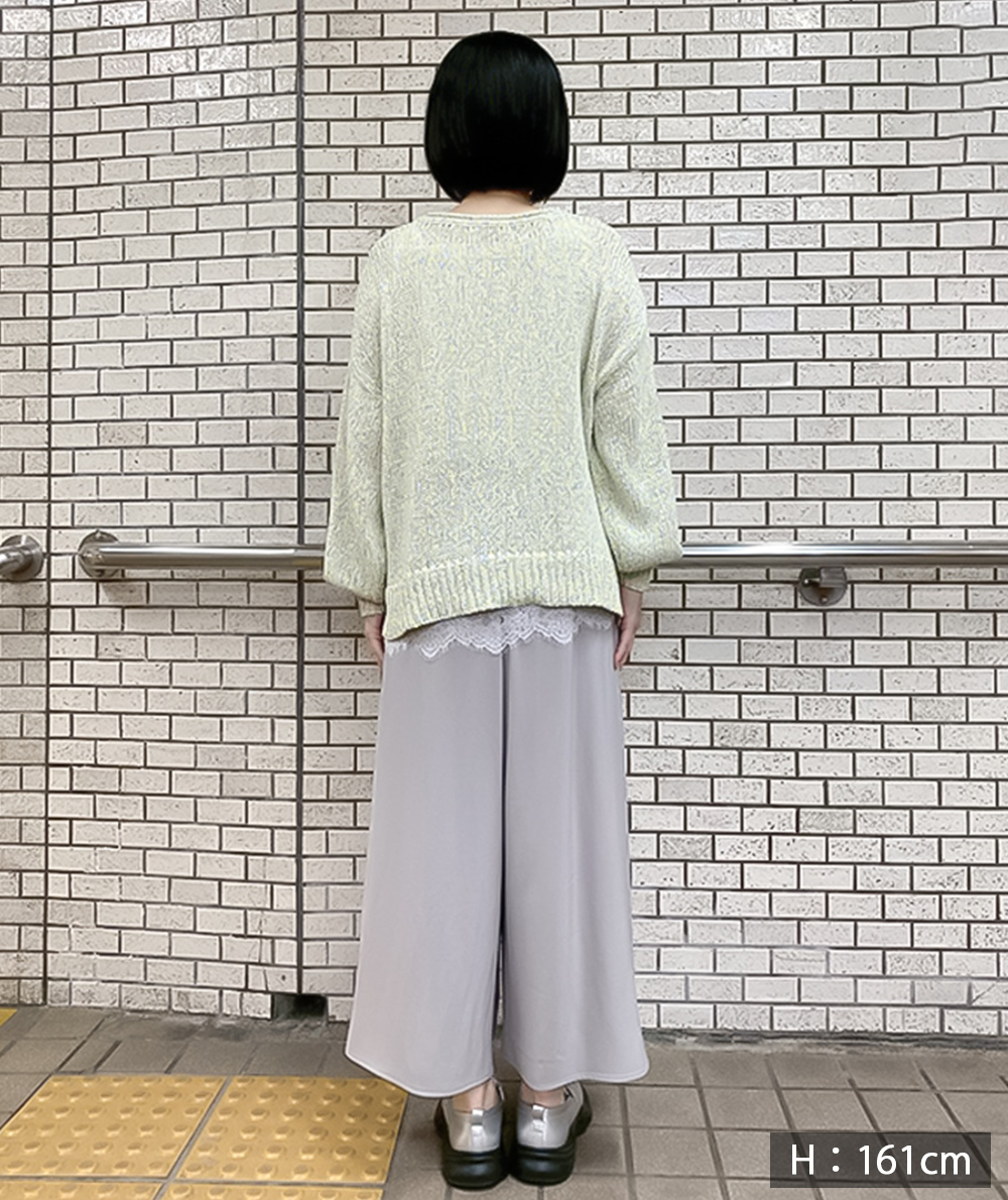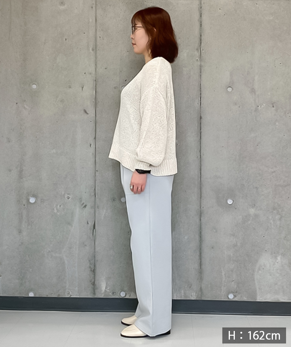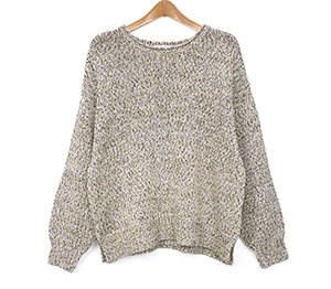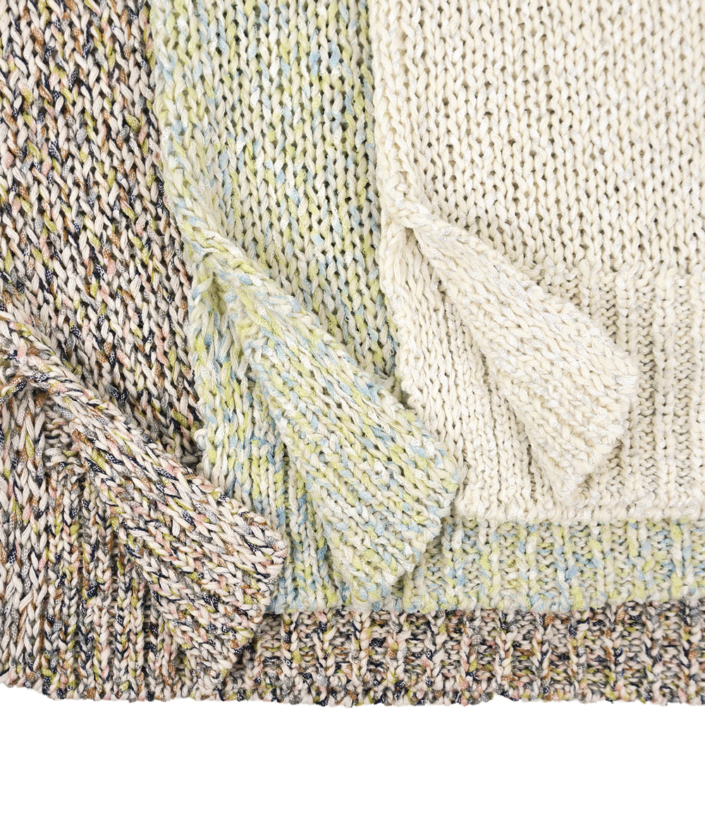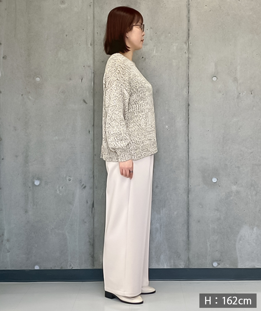 テープヤーンで編み立てたニット。程よくゆとりのあるシルエットでストレスフリーな着心地です。奥行きを感じる多色見えカラーも魅力的。日々のコーデに取り入れやすくスタイリングに重宝するアイテム。衿ぐりはスッキリとしたラウンドネックを採用。合わせやすいシンプルなデザインで、マルチに合わせられ重宝するアイテムです。
