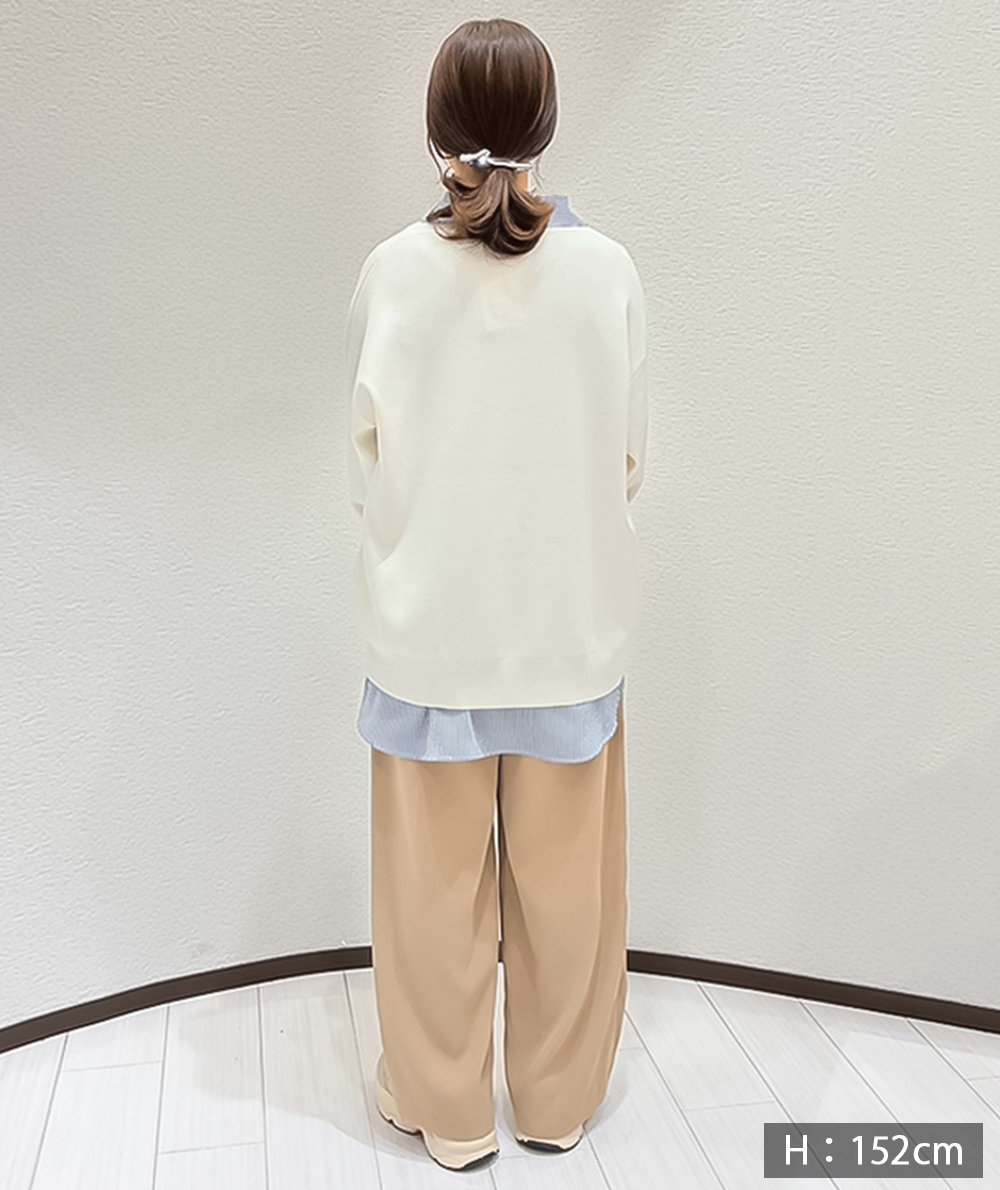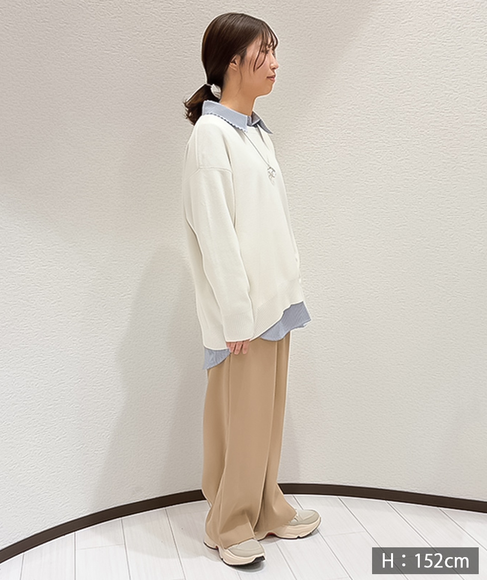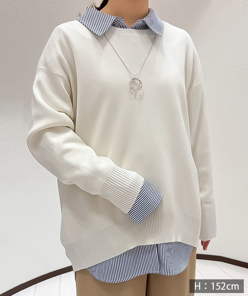 シャツがセットになったニットプルオーバーは1枚でトレンド感のあるコーディネートが完成する便利アイテムです。ニットはゆったりとしたサイジングでラフに着ていただけます。別々でも着用でき、着回しができるので今から春までのコーデに重宝します。デニムやワイドパンツと合わせたデイリースタイルがおすすめです。
