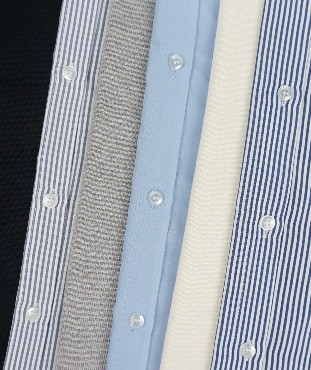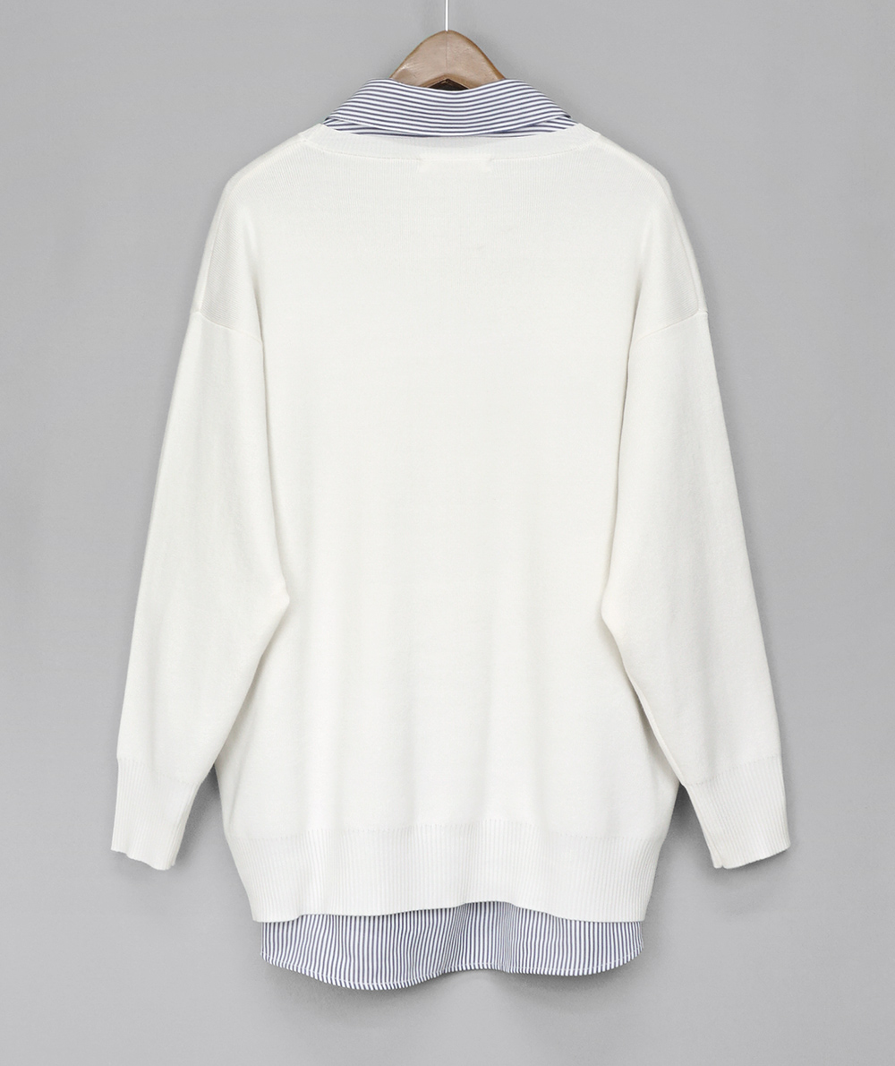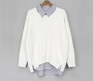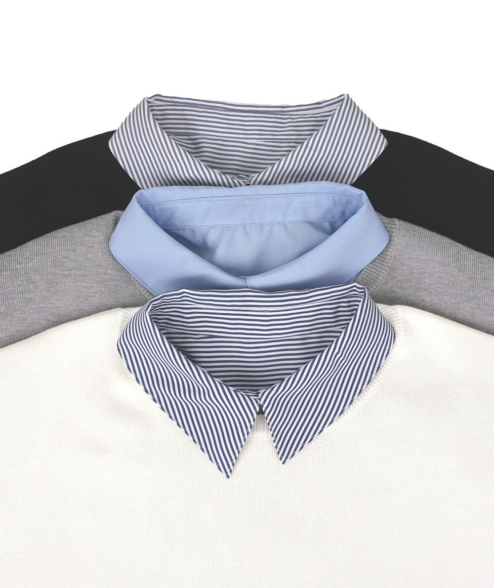 シャツがセットになったニットプルオーバーは1枚でトレンド感のあるコーディネートが完成する便利アイテムです。ニットはゆったりとしたサイジングでラフに着ていただけます。別々でも着用でき、着回しができるので今から春までのコーデに重宝します。デニムやワイドパンツと合わせたデイリースタイルがおすすめです。
